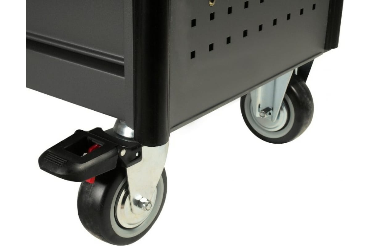 Инструментальная тележка с набором инструментов JTC 5021+225 является незаменимым помощником на станциях технического обслуживания, автомастерских. Корпус модели оснащается защитными бортами, которые максимально снижают риск повреждения конструкции и способствуют безопасной эксплуатации. Наличие функции автоматического возврата роликовых направляющих гарантирует плавность хода ящиков во время открывания или закрывания. Нескользящие вкладки и верхний коврик предназначаются для удобного хранения мелких деталей и комплектующих. Поверхность модели имеет специальное порошковое покрытие, которое обеспечивает устойчивость к воздействию растворителей, а также защищает от царапин.