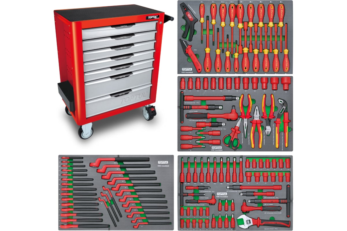 Инструментальная тележка с VDE инструментом идеально подходит для технического обслуживания электроники и электротехники в процессе работ под напряжением до 1000 В.
