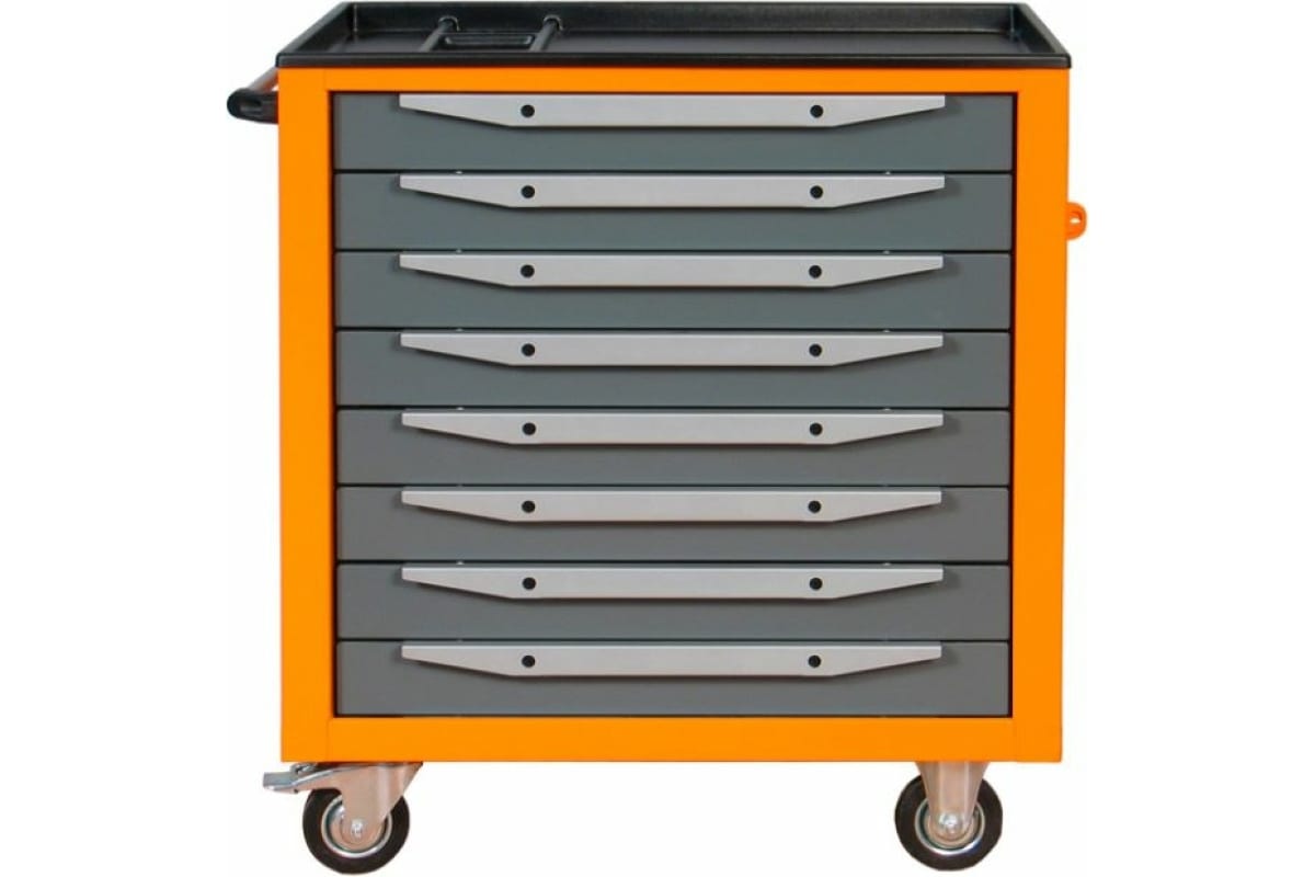 Инструментальная тележка Toollbox серии standart TBS-8 RAL 2008 изготавливается в исполнениях, укомплектованных восемью малыми выдвижными ящиками одного типоразмера по высоте.