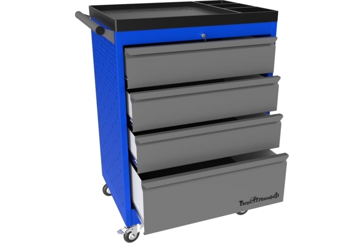 Преимущества инструментальной тележки Верстакофф 103109 M- Выдвижные ящики с системой фиксации, что предотвращает их произвольное открывание