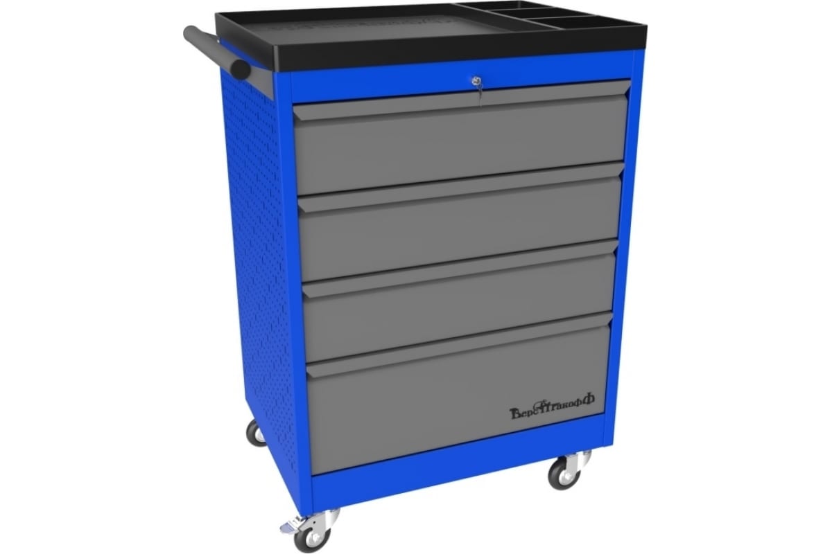 Инструментальная тележка Верстакофф PROFFI 950.4 M 103109 M подойдет для использования не только в сфере авторемонта и обслуживания автомобилей, но и в гаражах, на предприятиях любого профиля. Поворотные ножки обеспечивают мобильность, а специальный стопор предотвращает непроизвольное скатывание конструкции.