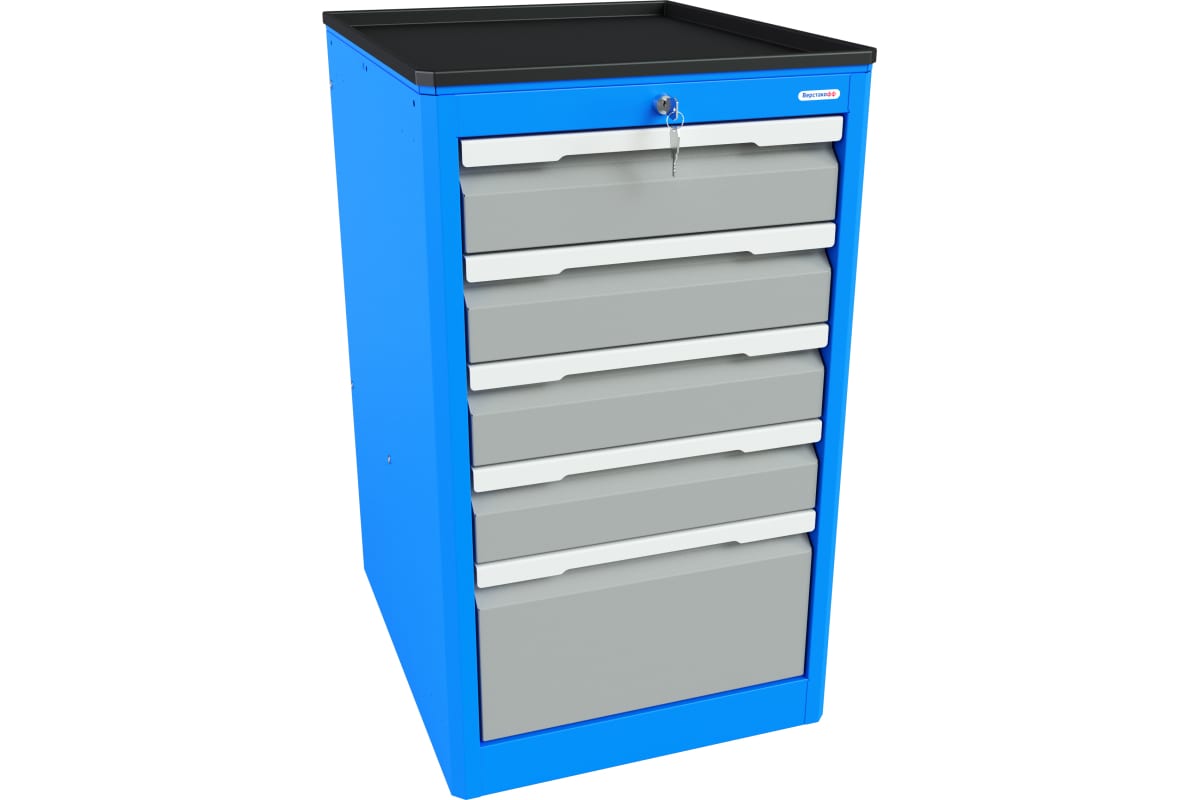Высота тумбы рассчитана таким образом, чтобы она помещалась под рабочими столами и верстаками. Это позволяет существенно сэкономить место и организовать удобное рабочее пространство.