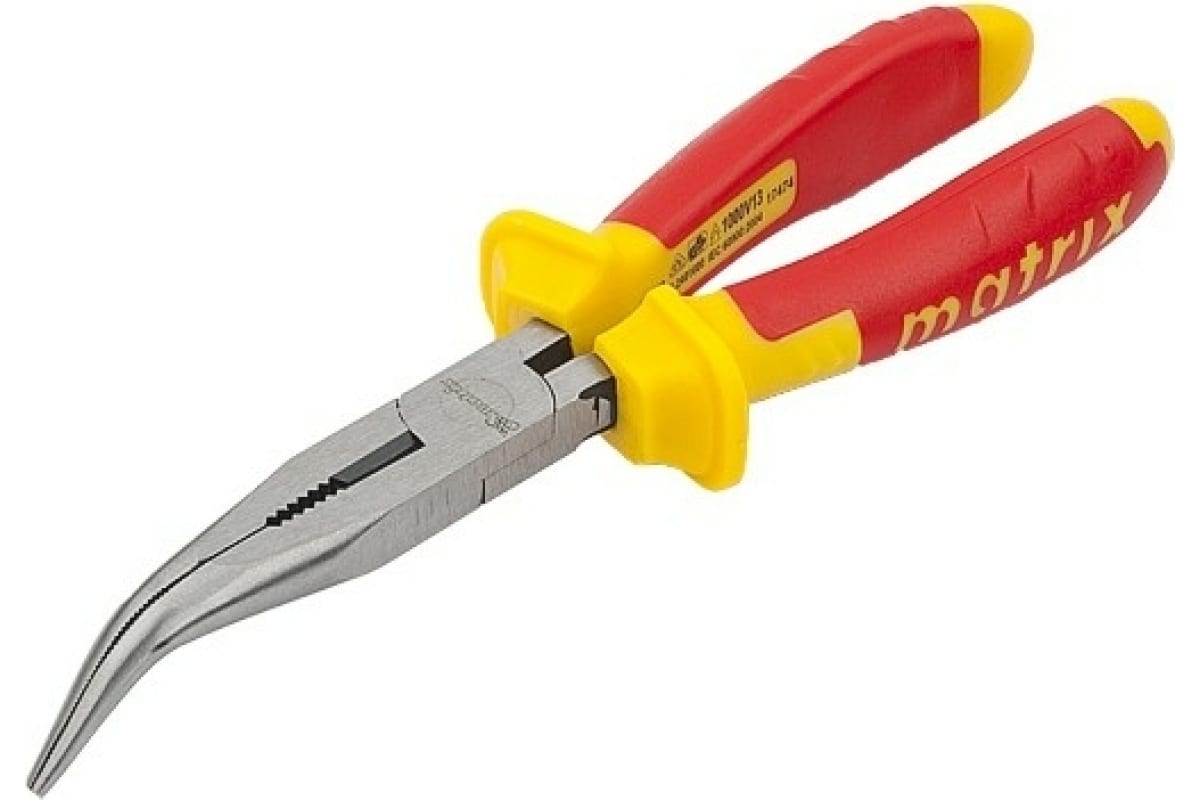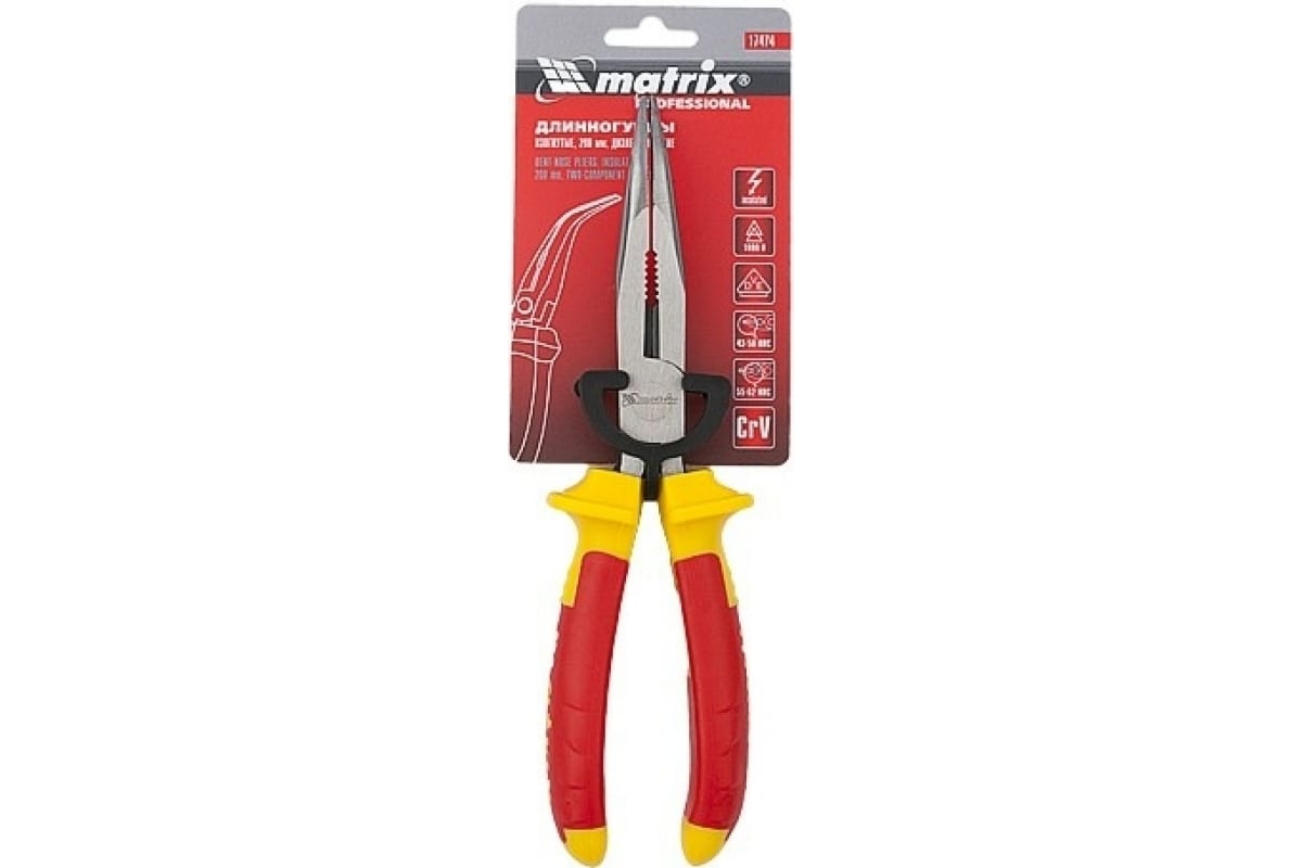 Изогнутые длинногубцы 200 мм MATRIX PROFESSIONAL Insulated 17474 - это надежный ручной инструмент как для ремонтных работ, так и электромонтажных до 1000 В. Соответствует электротехническим нормам безопасности. Рабочая часть изготовлена из хромованадиевой стали, режущие кромки которой дополнительно закалены, что увеличивает износостойкость и продлевает срок службы инструмента. Твердость губок 43?50 HRc. Длинногубцы имеют удобные противоскользящие двухкомпонентные рукоятки.