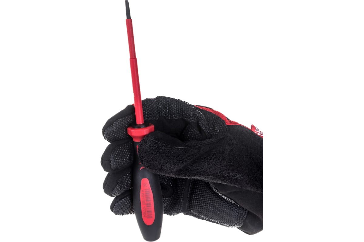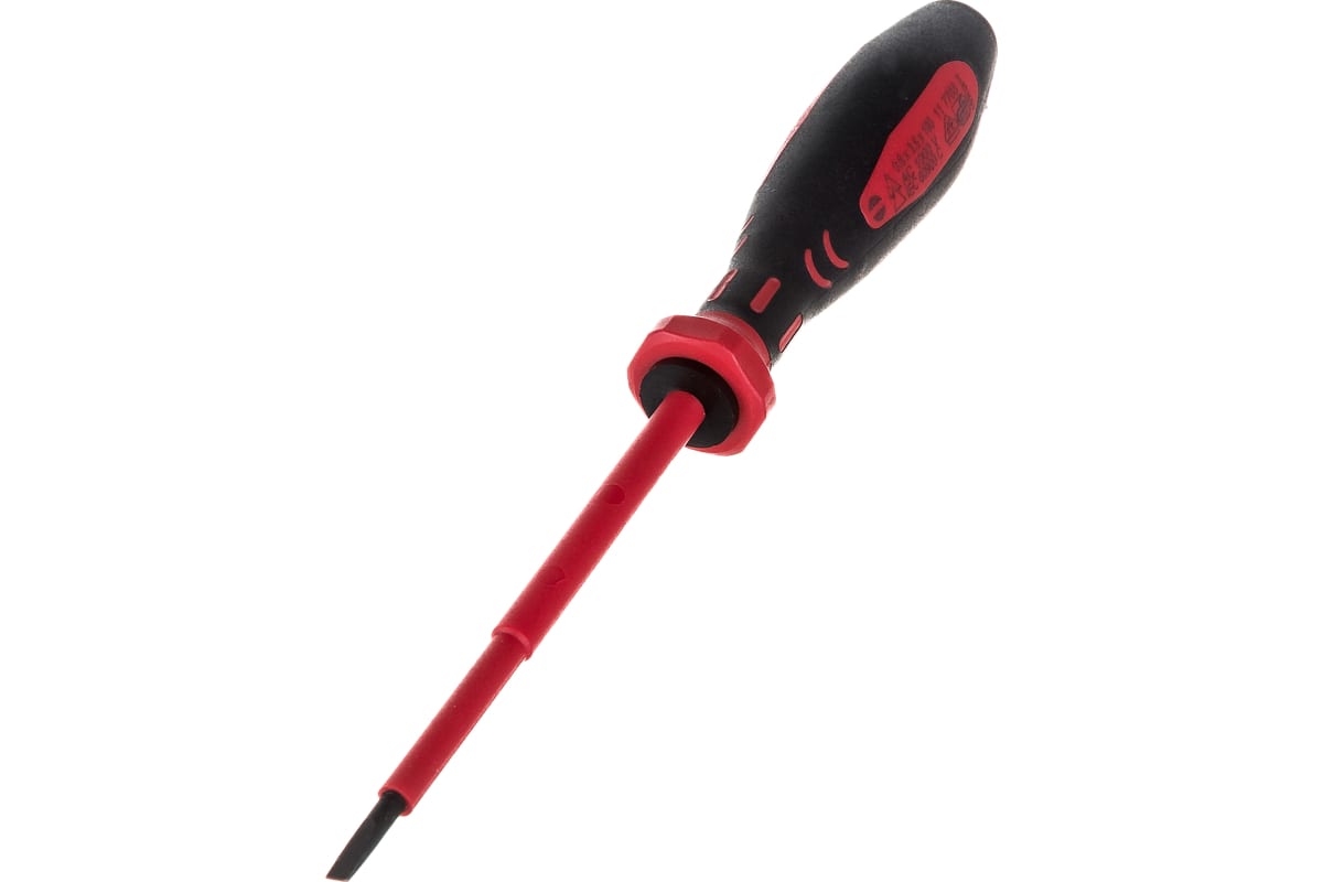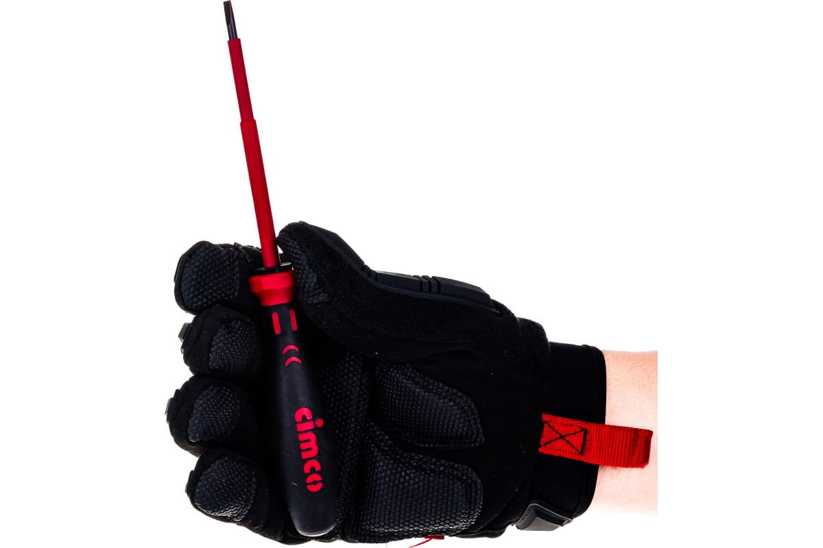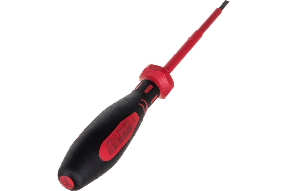 Изолированная шлицевая отвертка CIMCO 11 7703 предназначена для выполнения крепежных работ. Выполнена в соответствии со стандартом IEC 60900:2004 по классификации VDE 0682, часть 201. Отвертка имеет 1000 В защиту, что позволяет работать с крепежом под напряжением. Благодаря эргономичной форме рукоятки, снижается усталость при длительной работе.