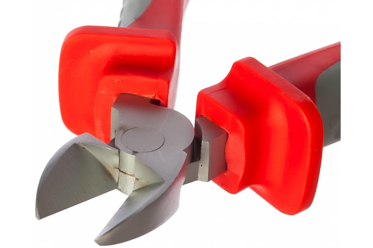 Изолированные бокорезы 160 мм КВТ 60471 позволяют выполнять резание проволоки под напряжением до 1000 В. Рабочая часть изготовлена из инструментальной ванадиевой стали. Поверхность обработана матовым никелированием. Двухсторонняя заточка лезвий обеспечивает чистый рез. На рукоятках предусмотрены упоры для пальцев для исключения соскальзывания.