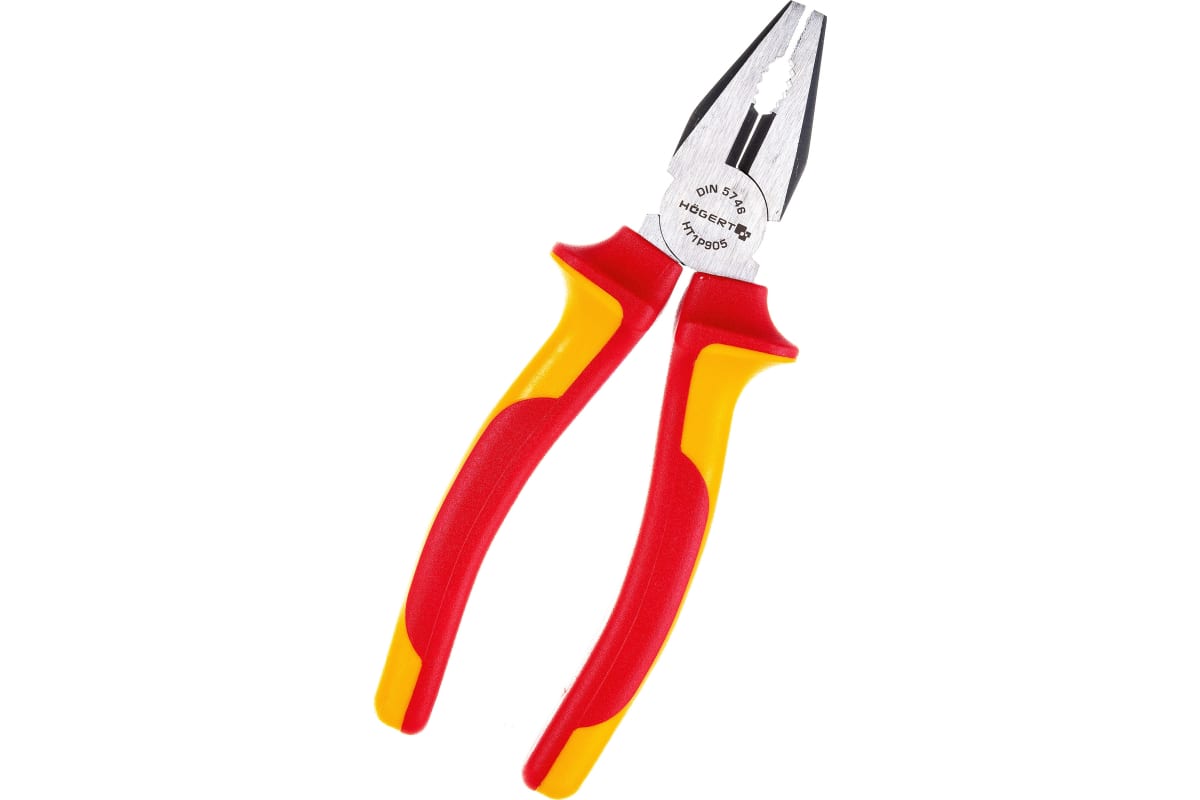 Изолированные пассатижи HOEGERT TECHNIK 180 мм, 1000 V, VDE HT1P905 сертифицированы для работы под напряжением 1000 В при средних и больших механических нагрузках