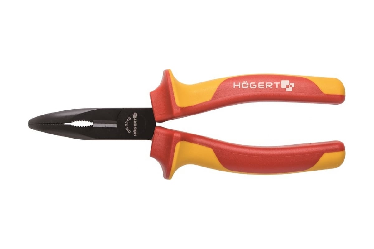 Изолированные удлиненные пассатижи HOEGERT TECHNIK с полукруглыми изогнутыми губками 200 мм HT1P923 сертифицированы для работы под напряжением 1000 В при средних и больших механических нагрузках