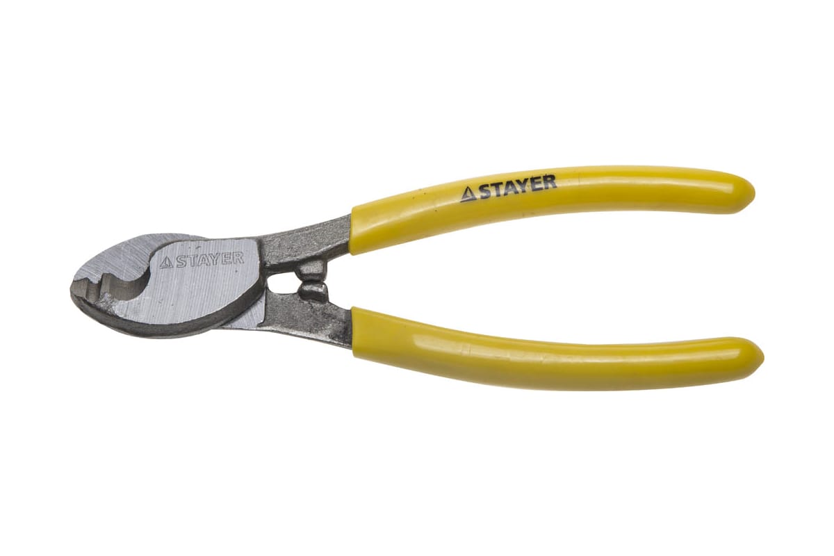 Кабелерез Stayer PROFI для цветных металлов Cu + Al , кабель до d 6мм, 160мм 2332-16_z01 применяется для перерезания многожильного кабеля из алюминия и меди. Также инструмент подходит перекусывания тросов и закаленной проволоки.
