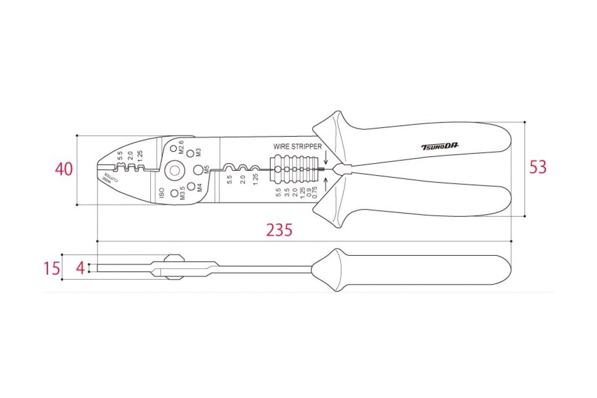 Преимущества клещей TSUNODA AP-02- TSUNODA AP-02 имеет 5 функций для работы с кабелем.
