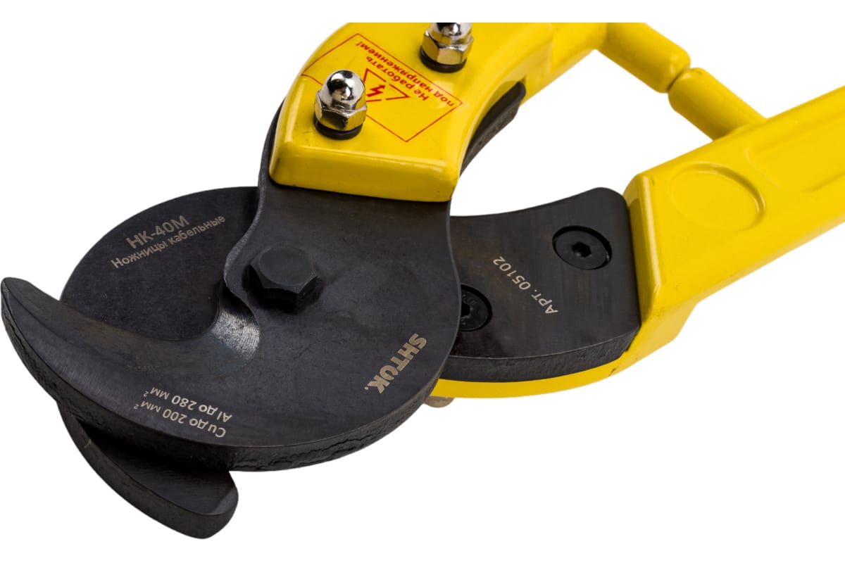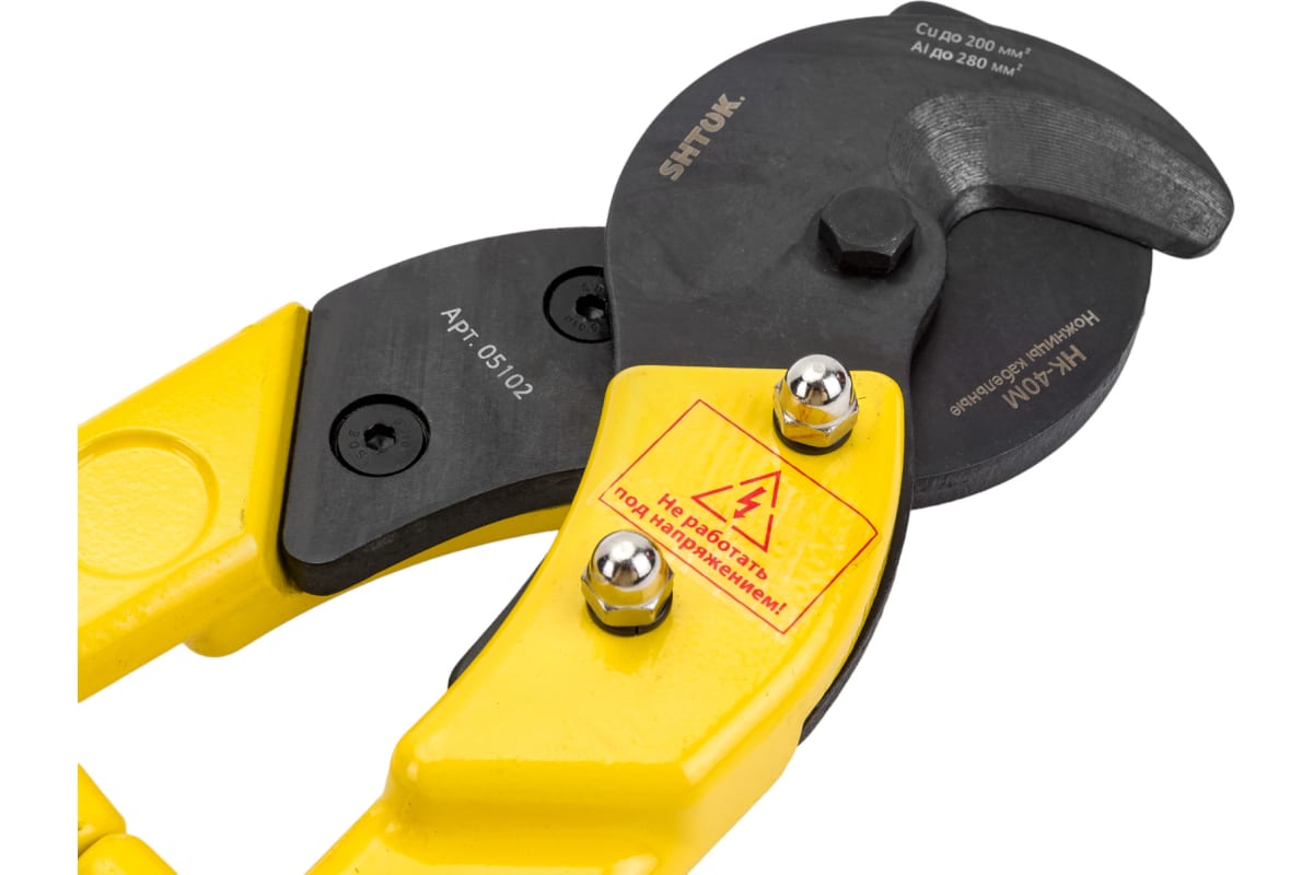 Кабельные ножницы SHTOK НК-40М 05102 обладают простой конструкцией. Малый вес и небольшие размеры, обеспечивают удобную работу на протяжении длительного времени работы. Ножницы предназначены для резки кабеля диаметром 30 мм.