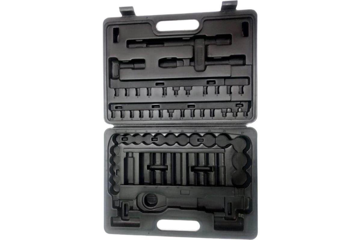 Кейс выполнен из качественного пластика высокой прочности и надежности. Для каждого инструмента имеется специальный размерный отсек.