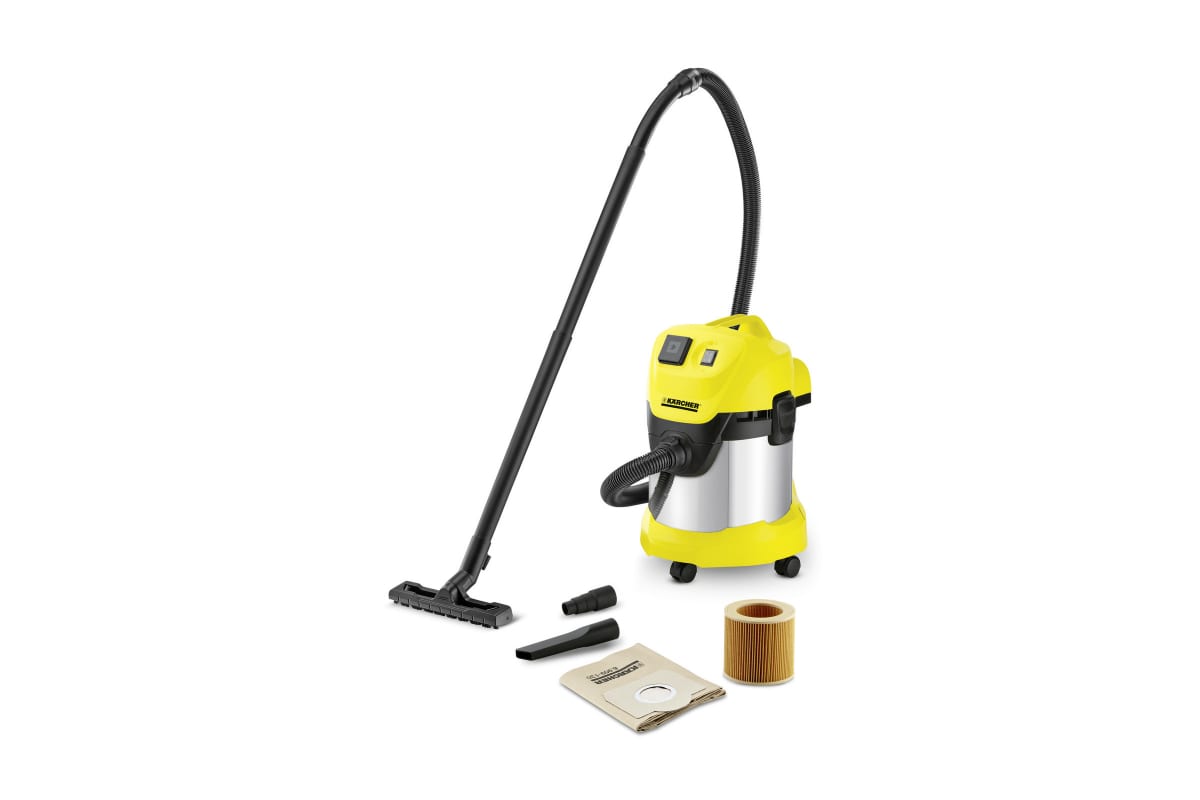 Хозяйственный пылесос Karcher WD 3 P PREMIUM 1.629-891 применяется для уборки в прихожей, мастерской, подвале, внутри автомобиля. Подходит для работы с электроинструментом (100-2100 W). Может собрать пыль, влажный мусор и небольшой объем воды.