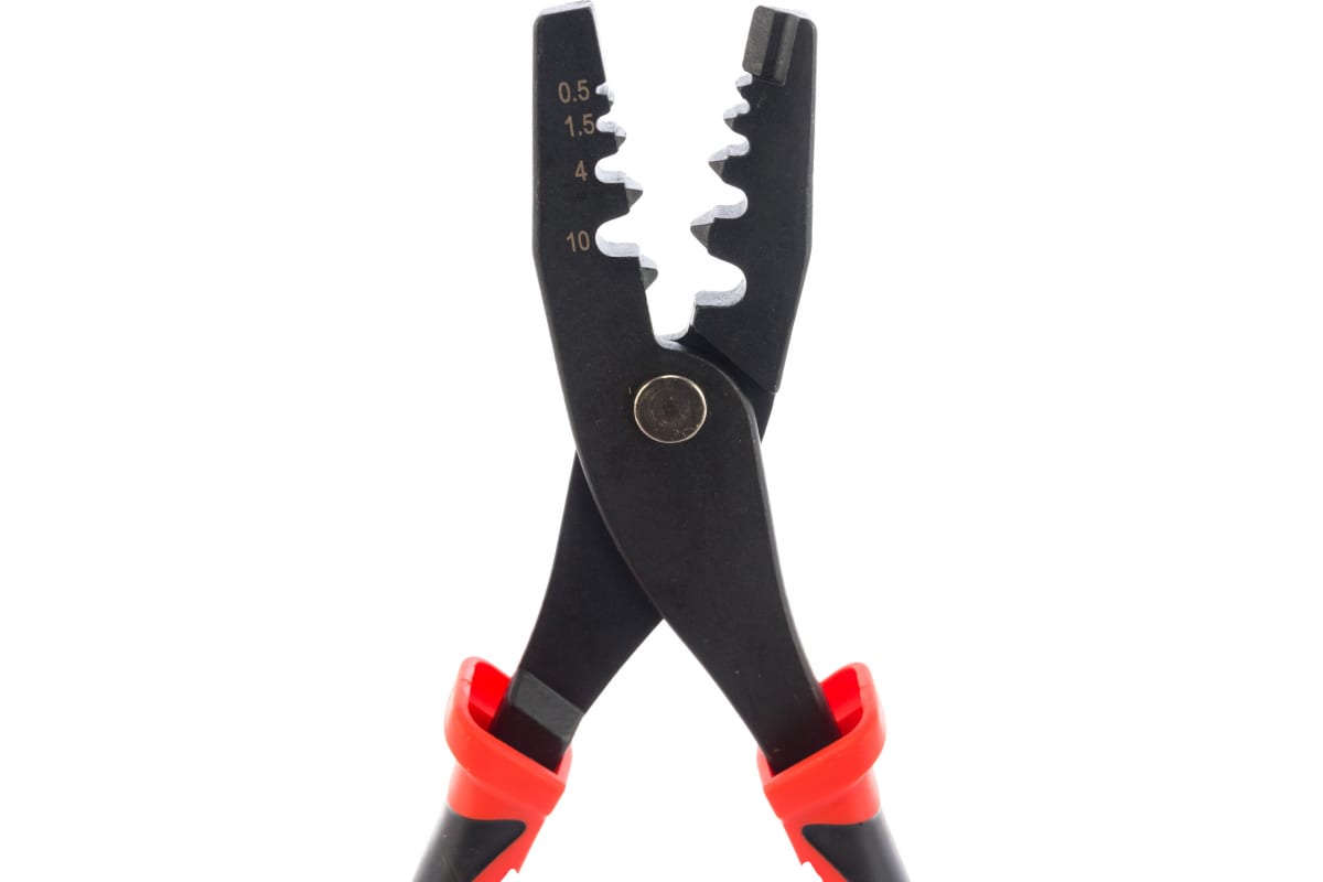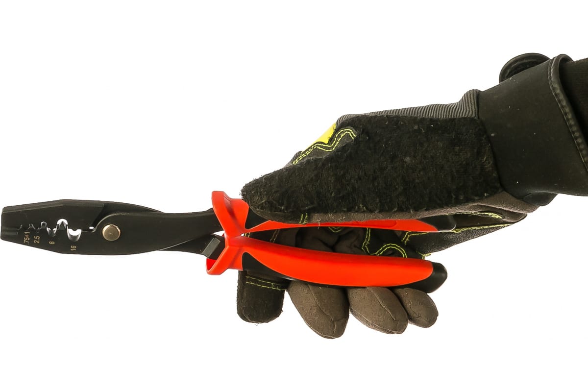 Клещи CIMCO 10 1904 предназначены для шипового прессования сечений 0.5-16 кв.мм. Инструмент подходит для втулковых наконечников. Длинные рукоятки уменьшают прилагаемое усилие. Присутствует изоляция. Небольшие габариты позволяют легко переносить инструмент вне кейса: длина составляет 230 мм, вес - 248 граммов.