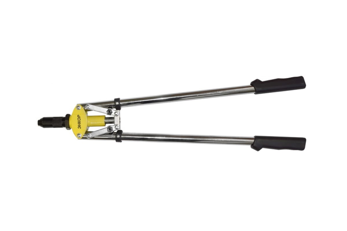 Клещи для заклёпок с удлиненными рукоятками Энкор 69174 позволяют работать с небольшим усилием при установке клепок максимального диаметра. Стальная конструкция включает в себя длинные рукоятки с накладками и рычажный механизм.