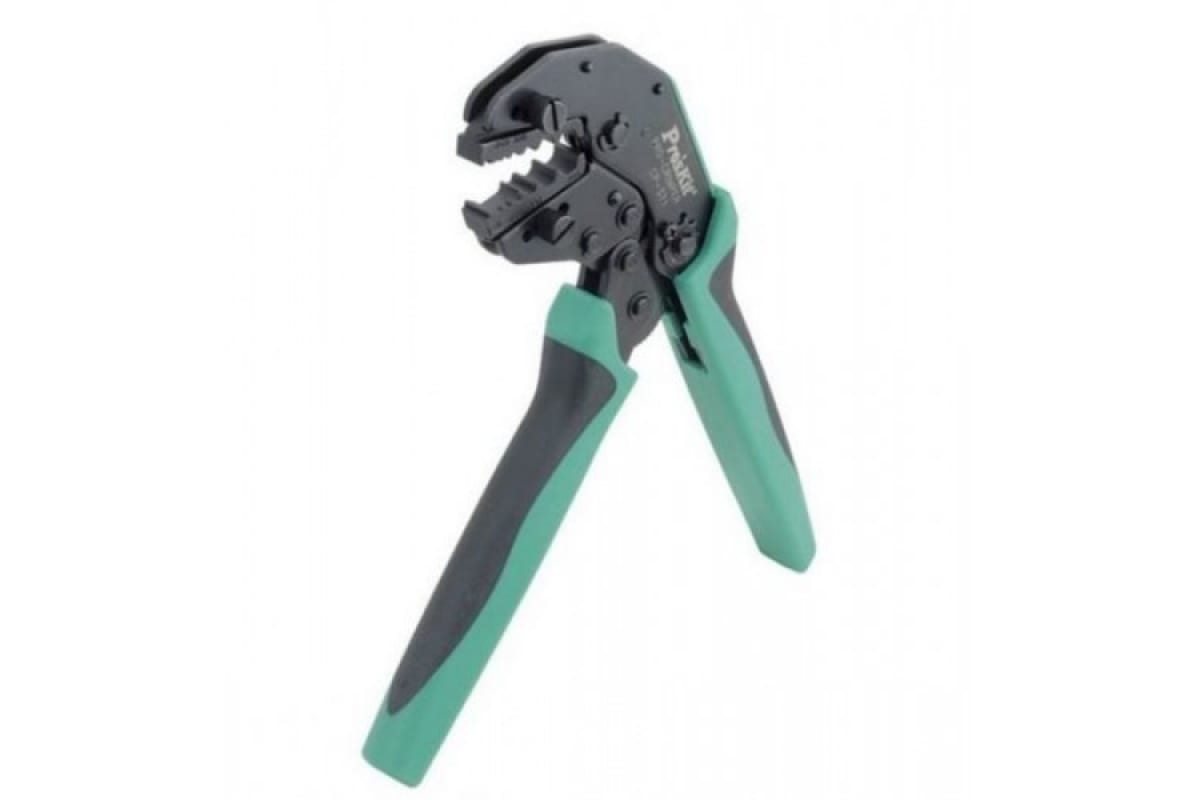 Клещи со сменными губками ProsKit CP-371B 00193828 оборудован храповым механизмом, что обеспечивает эффективную работу с изолированными и неизолированными наконечниками.