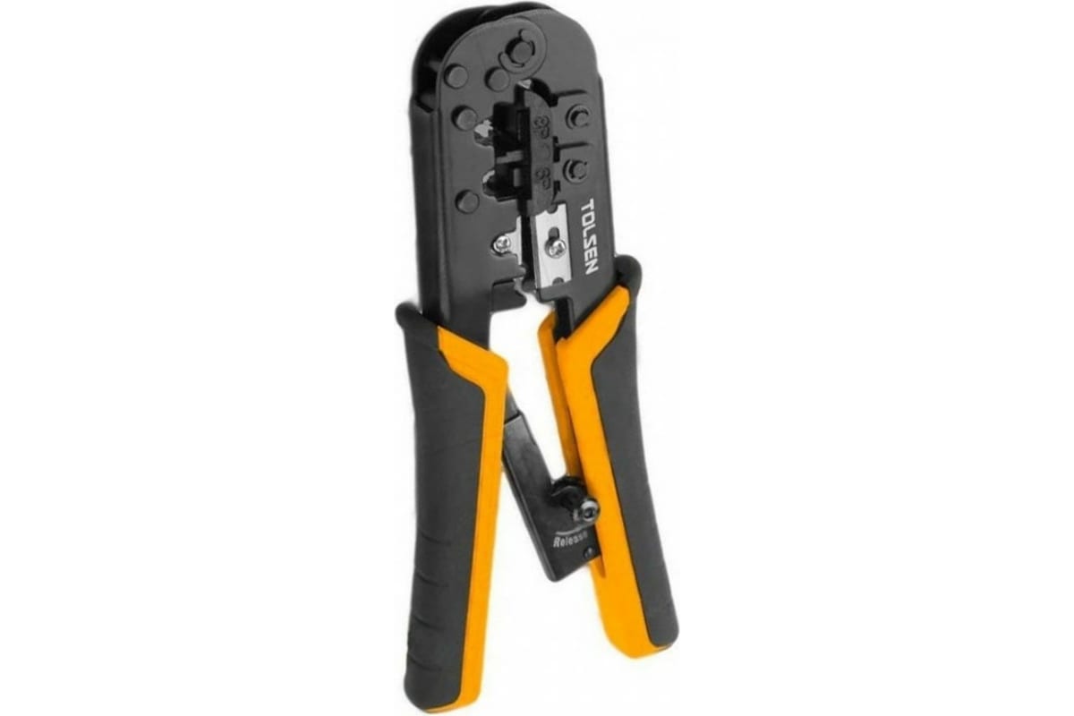 Клещи TOLSEN для обжима кабелей с храповым механизмом 185мм 38054 упрощают работу электрика. Инструмент оснащен удобными рукоятками, что позволяет без труда удерживать инструмента в ладони.