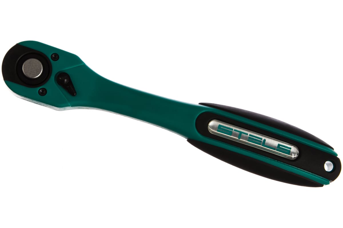 Ключ-трещотка Stels 14030 из стали CrV, с присоединительным квадратом 1/2 дюйма и 72-зубым храповым механизмом, с быстрым сбросом и 2-компонентной рукояткой, используется для работы с резьбовыми соединениями. Предназначен для установки торцевых головок, а также адаптеров и удлинителей с посадочным отверстием соответствующего размера. Храповый механизм обеспечивает исключительную плавность хода ключа. Инструмент удобен для работы в стесненных условиях, так как шаг трещотки составляет всего 5 градусов. Будет полезен в сервисном центре, на СТО, а также пригодится дома или в поездке.