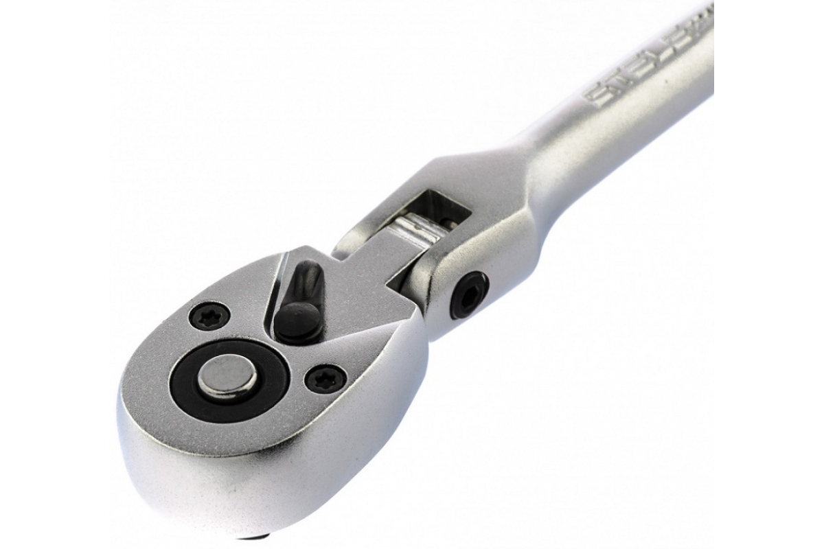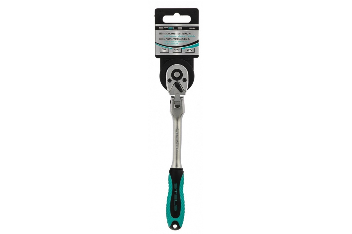 Шарнирный ключ-трещотка Stels 14044 из стали CrV, с 72 зубцами и быстрым сбросом, совместим с торцевыми головками, адаптерами и удлинителями с посадочным гнездом 1/4 дюйма. Предназначен для закручивания и раскручивания резьбовых соединений. Исключительная плавность хода обеспечивается 72-зубым храповым механизмом. Ключом можно работать в ограниченном пространстве — шаг трещотки всего 5 градусов. Инструмент будет полезен в сервисной мастерской, автотехцентре, а также дома, на даче или в поездке.