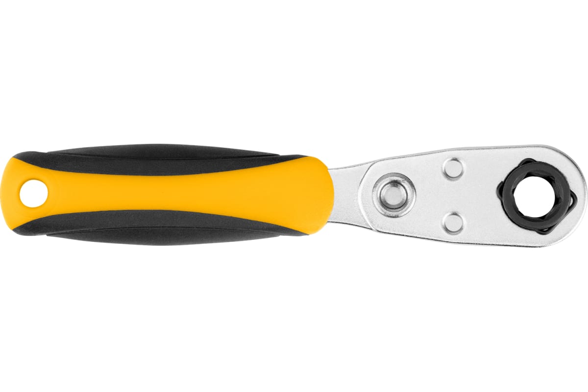 Преимущества ключа-трещотки Denzel 11633- Корпус из закаленной хромомолибденовой стали выдерживает повышенные нагрузки - прочность