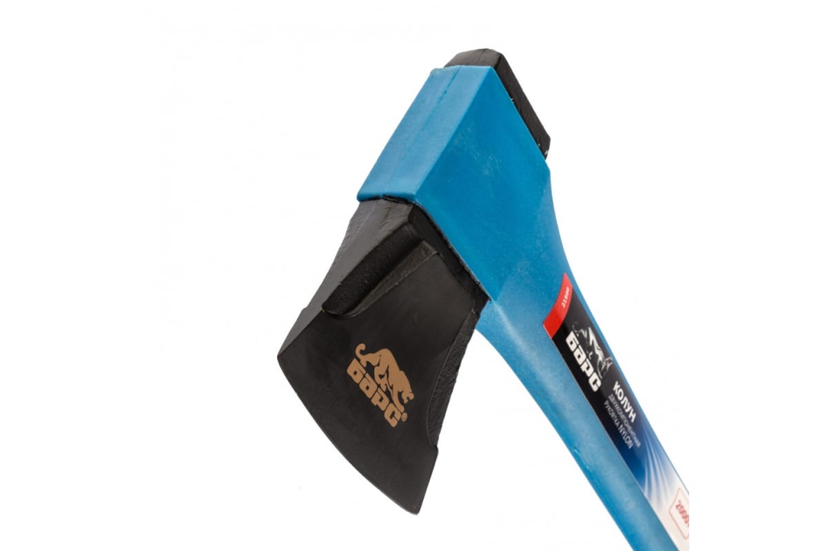 Топорище изготовлено из фибергласа с прорезиненным покрытием, оно отличается высокой механической прочностью и устойчивостью к неблагоприятным воздействиям среды. Топорище отлично поглощает колебания, которые возникают в процессе работы и предотвращает их передачу на руки пользователя.