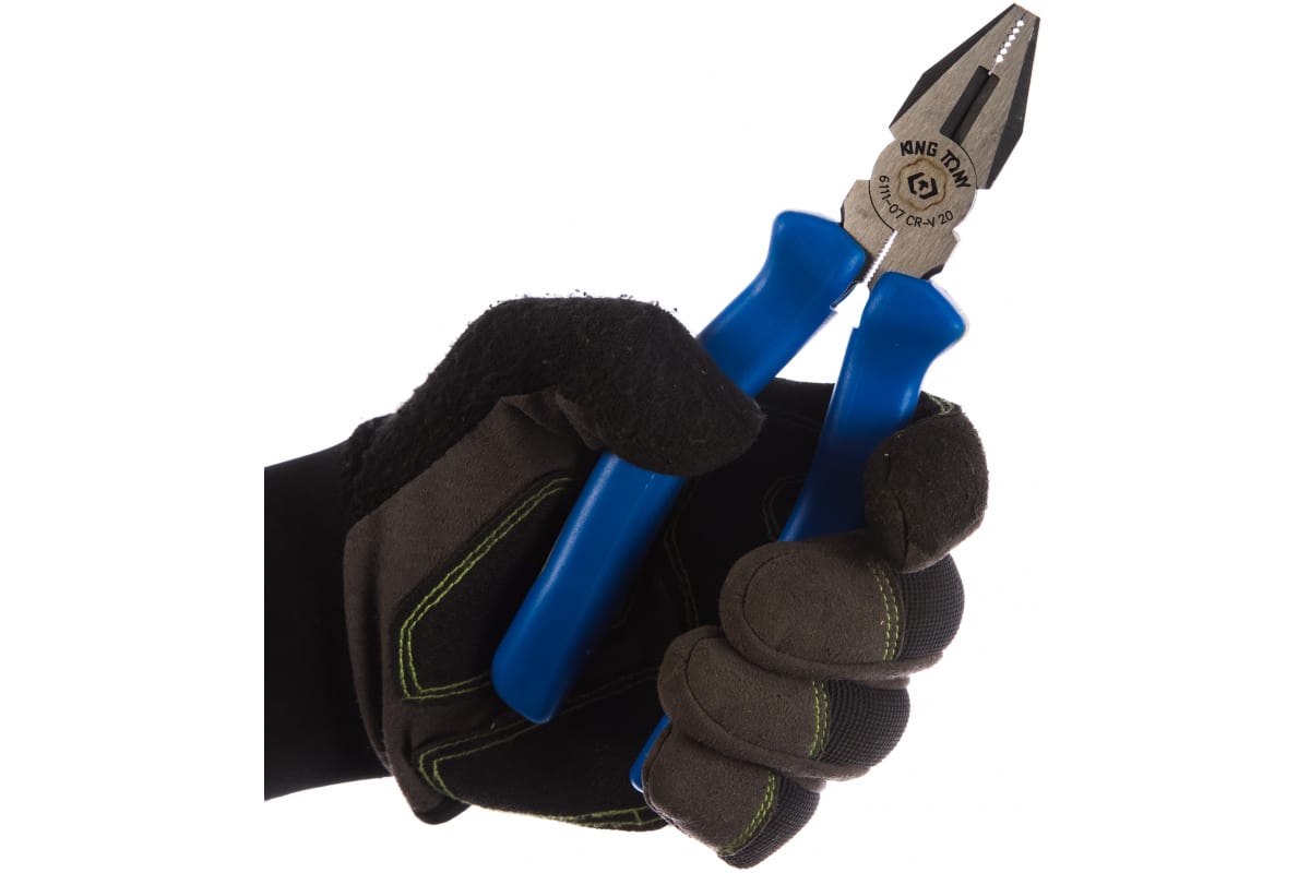 Комбинированные плоскогубцы KING TONY 180 мм 6111-07 - это шарнирно-губцевый инструмент, который применяется для удержания и пережима провода, проволоки или лески. Изделие состоит из рабочей части с закаленными режущими кромками и двухкомпонентных рукояток. Длина плоскогубцев - 180 мм.