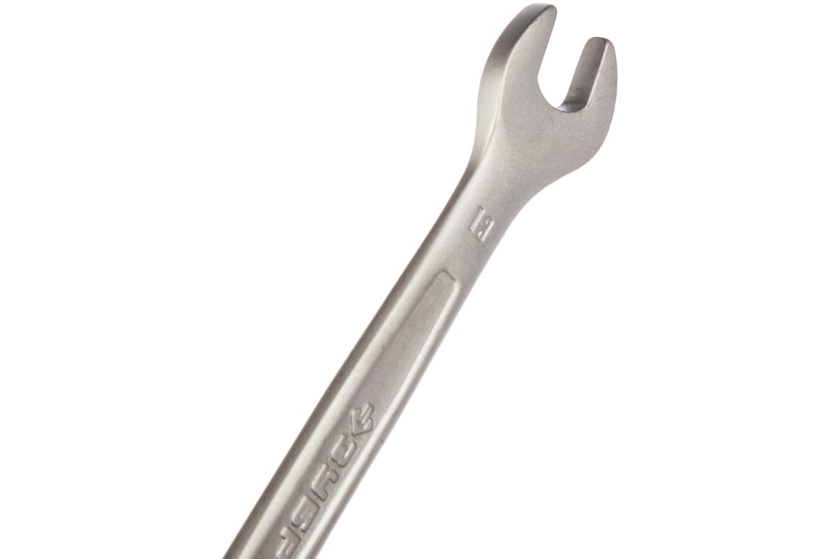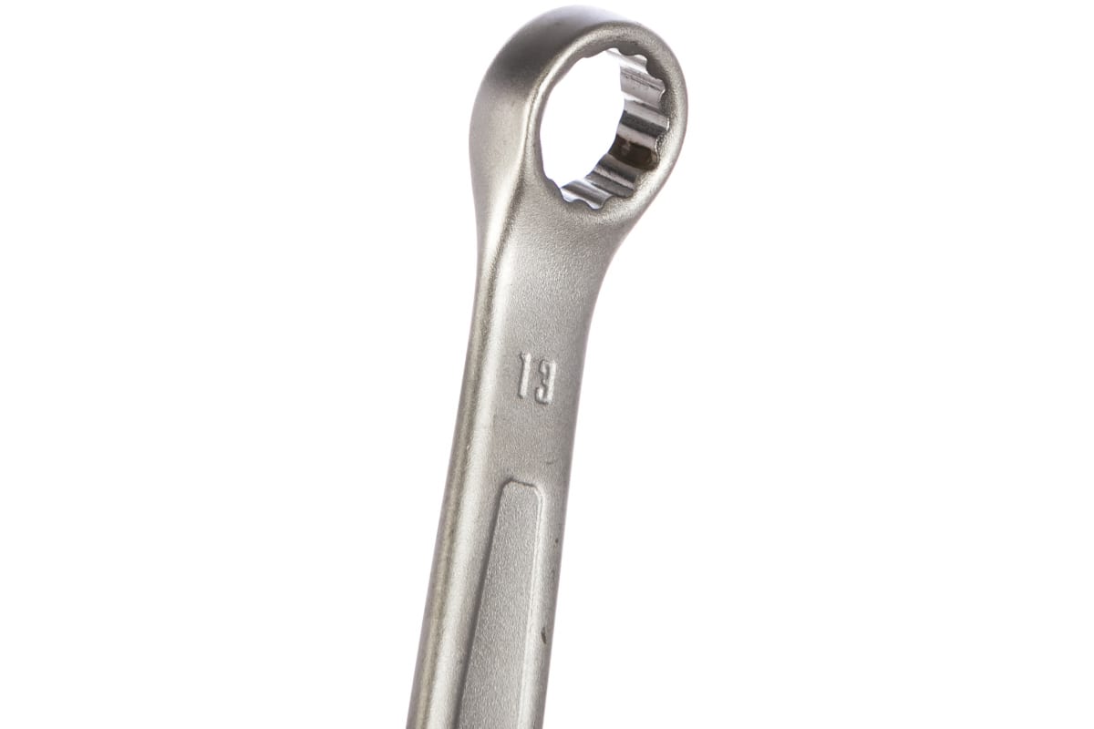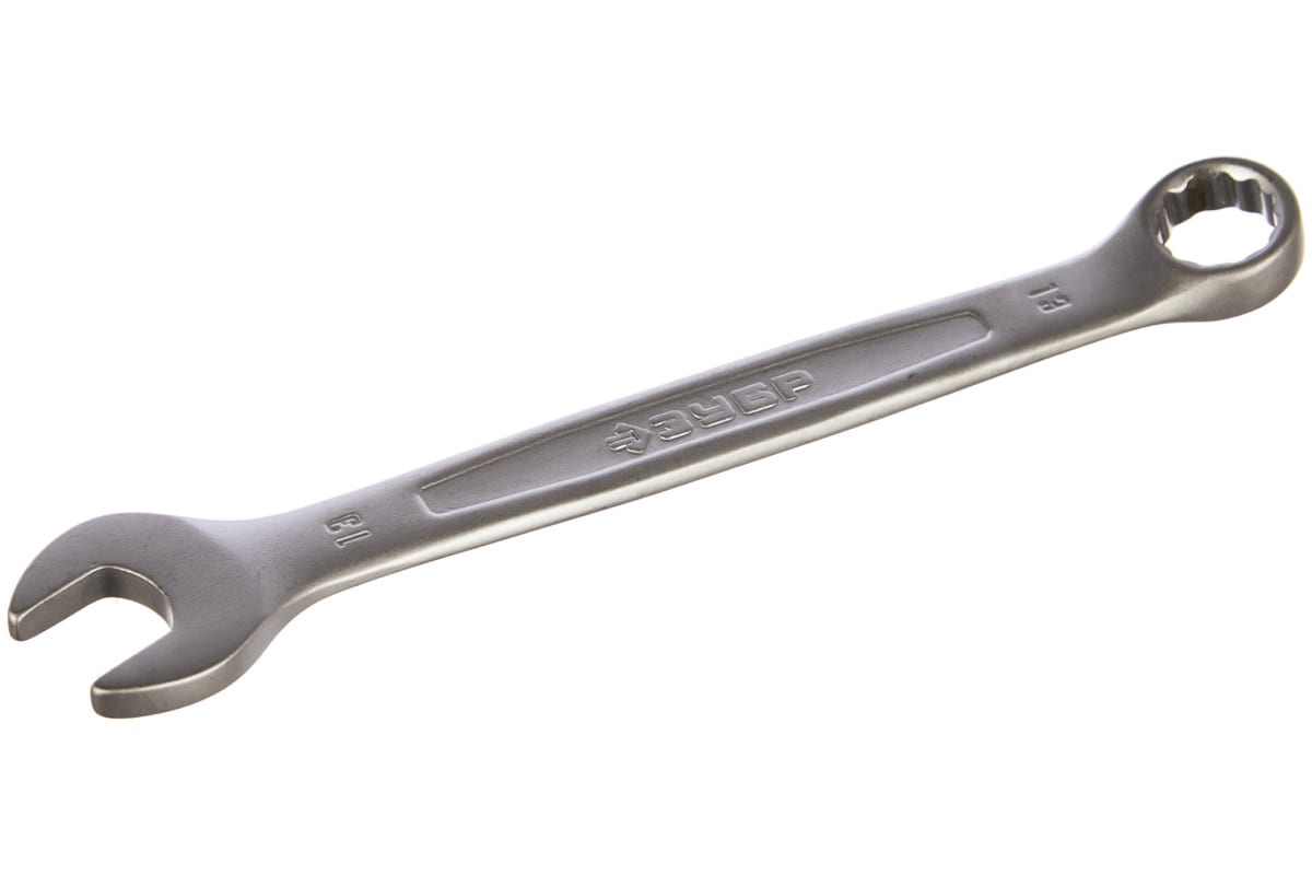 Комбинированный гаечный ключ 13 мм ЗУБР Профессионал 27087-13_z01 оснащен парой головок, которые расположены под углом 15 градусов по отношению к рукоятке.