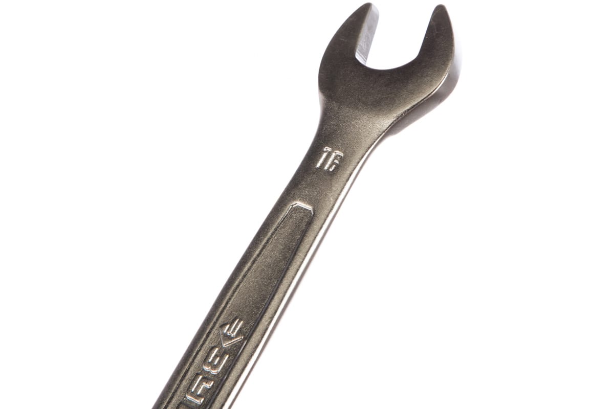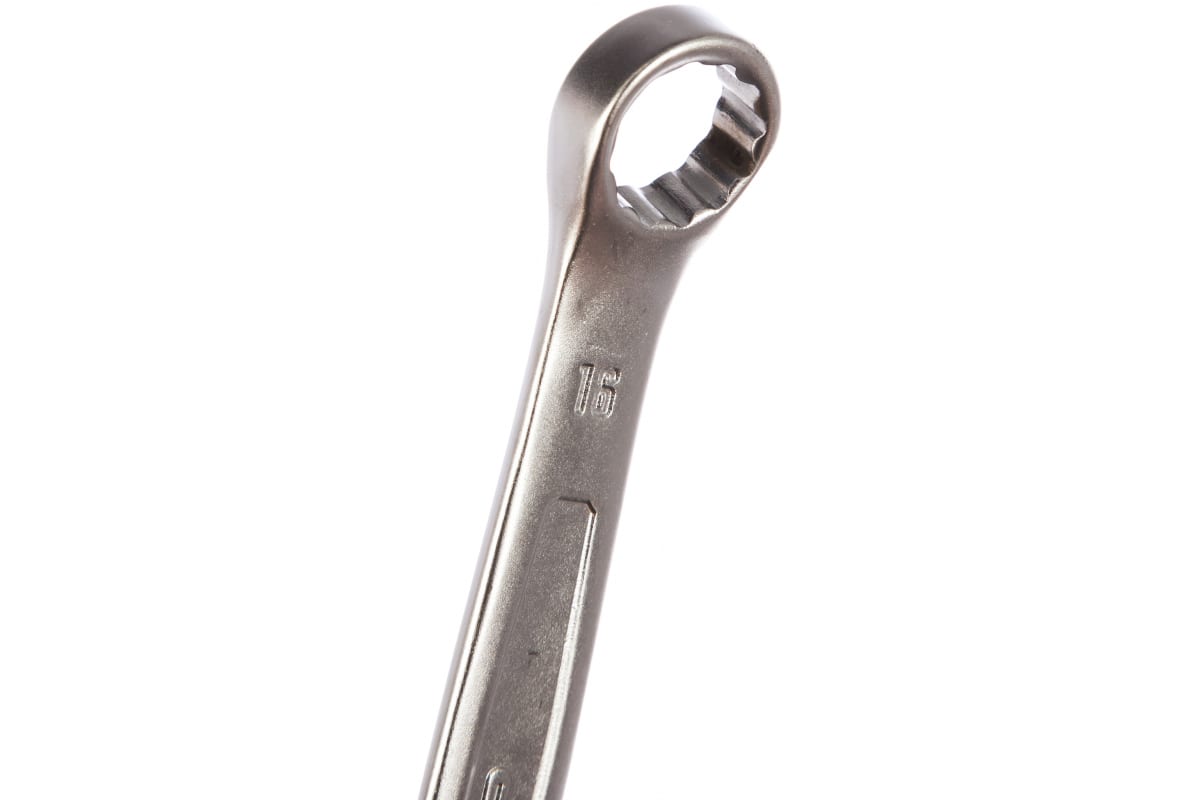 Комбинированный гаечный ключ 16 мм Зубр 27087-16_z01 оснащен парой головок, которые расположены под углом 15 градусов по отношению к рукоятке.