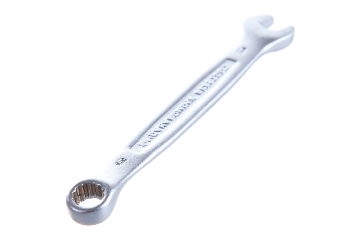 Комбинированный гаечный ключ 6 мм ЗУБР Профессионал 27087-06_z01 оснащен парой головок, которые расположены под углом 15 градусов по отношению к рукоятке.