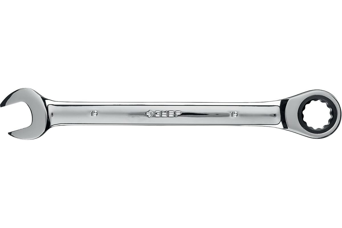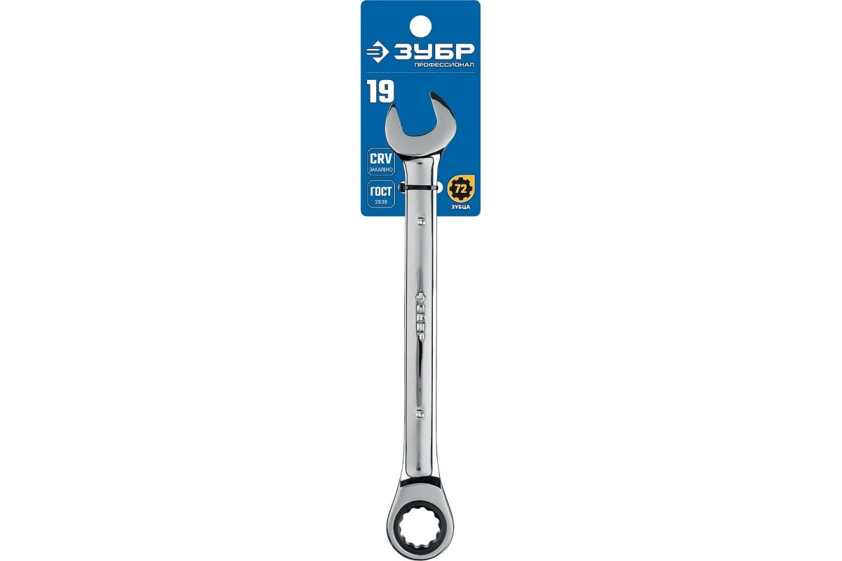 Комбинированный гаечный трещоточный ключ 19 мм Зубр 27074-19_z01 позволяет вращать крепеж с минимальным углом 5 градусов.