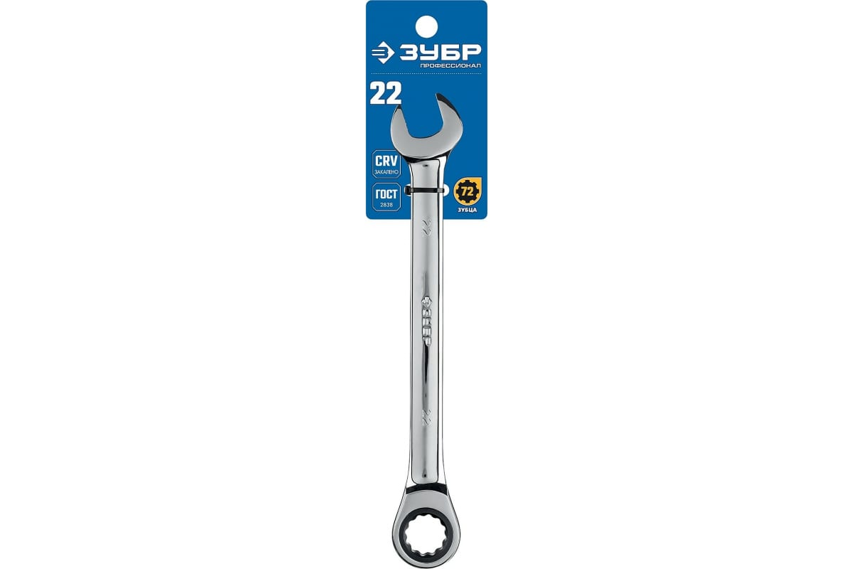 Комбинированный гаечный трещоточный ключ 22 мм Зубр 27074-22_z01 позволяет вращать крепеж с минимальным углом 5 градусов.