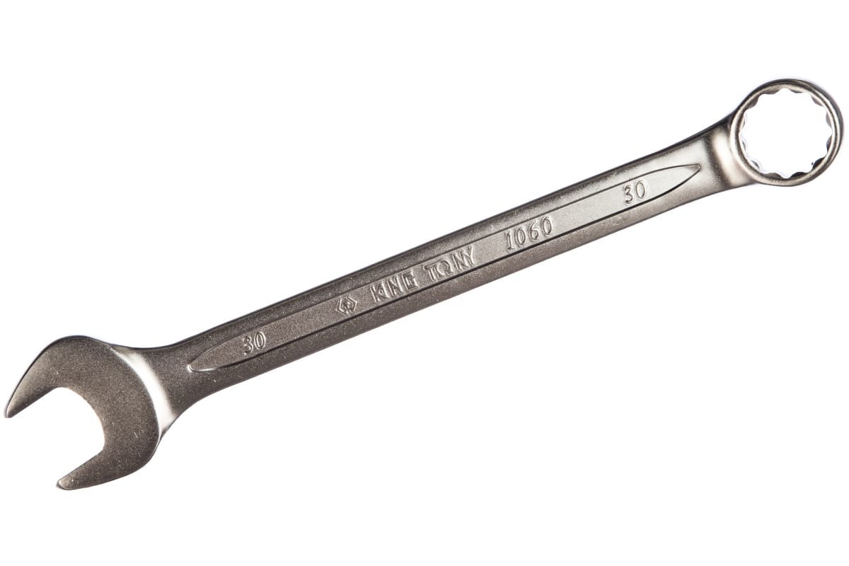 - Матовое хромовое покрытие комбинированного ключа 30мм KING TONY 1060-30 защищает от коррозии;