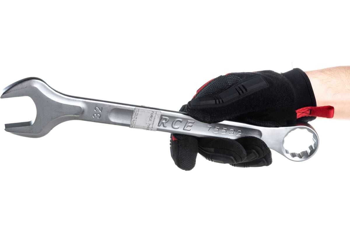 Комбинированный ключ FORCE 32мм 75532 выполнен из стойкой и надежной стали. Изделие предназначено для откручивания и закручивания крепежных элементов. Ключ состоит из рукоятки, рожковой и накидной головок. Размер головок - 32 мм.