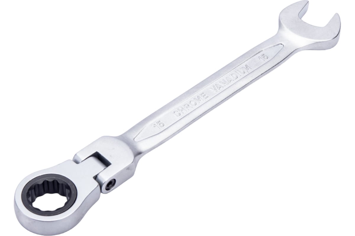 Комбинированный ключ HOEGERT TECHNIK шарнирный с трещоткой 15 мм, 72T, сталь CrV HT1R055 удобен для работы с крепежом различного формата. Инструмент имеет прочную основную часть, а также широкие основания. Это позволяет работать с большим усилием.Наклон головок обеспечивает доступ к крепежу в ограниченном пространстве.