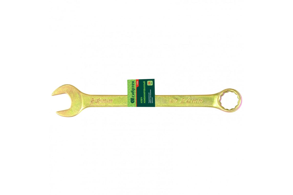 Комбинированный ключ СИБРТЕХ 24 мм 14986 применяется при монтаже или демонтаже резьбовых соединений, имеющих шестигранные рабочие профили. Накидная головка с двенадцатигранным рабочим профилем обеспечивает минимальный риск деформации граней крепежа. Кольцевой зев имеет угол наклона в 15 градусов, что позволяет работать в труднодоступных местах.