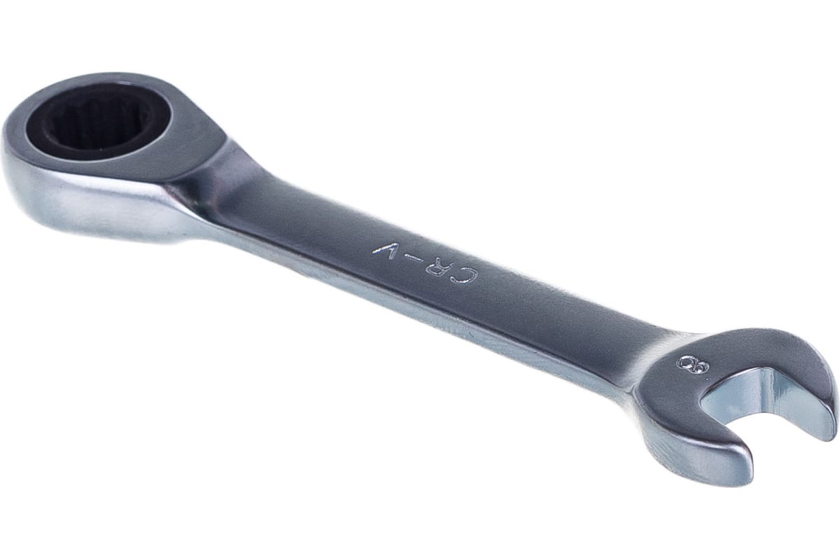 Комбинированный трещоточный укороченный ключ AV Steel 8мм шт AV-315308 обладает сравнительно небольшой длиной. которая обеспечивает простоту и эффективность вращения в ограниченном пространстве.