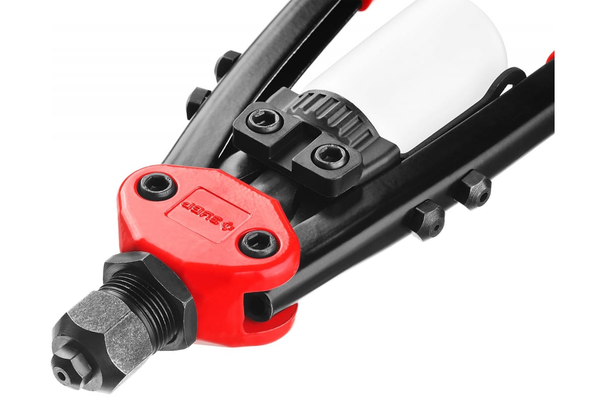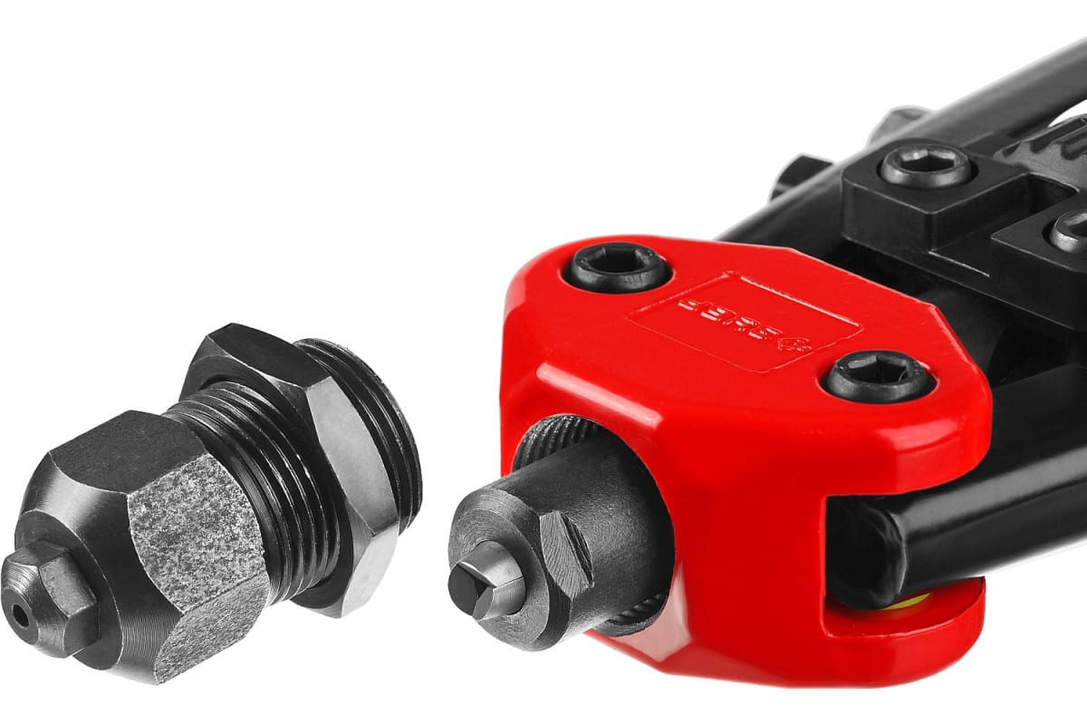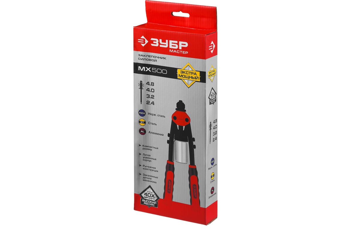 Преимущества заклепочника ЗУБР 31032- Двухрычажная конструкция Зубр МХ500 31032 многократно уменьшает прилагаемое усилие и снижает утомляемость при длительной работе.