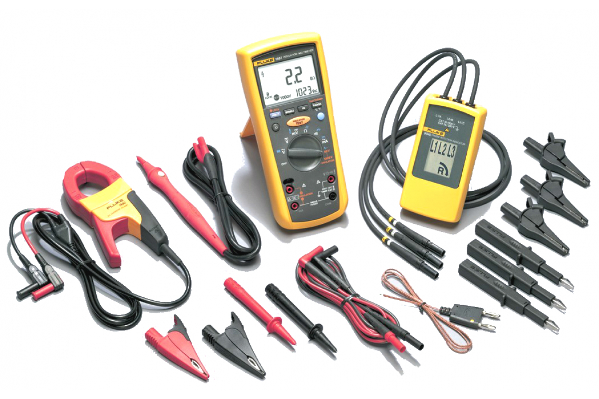 Комплект Fluke мультиметр-мегомметр + токовые клещи + индикатор чередования фаз 1587/MDT FC предназначен для профилактического обслуживания электрооборудования.