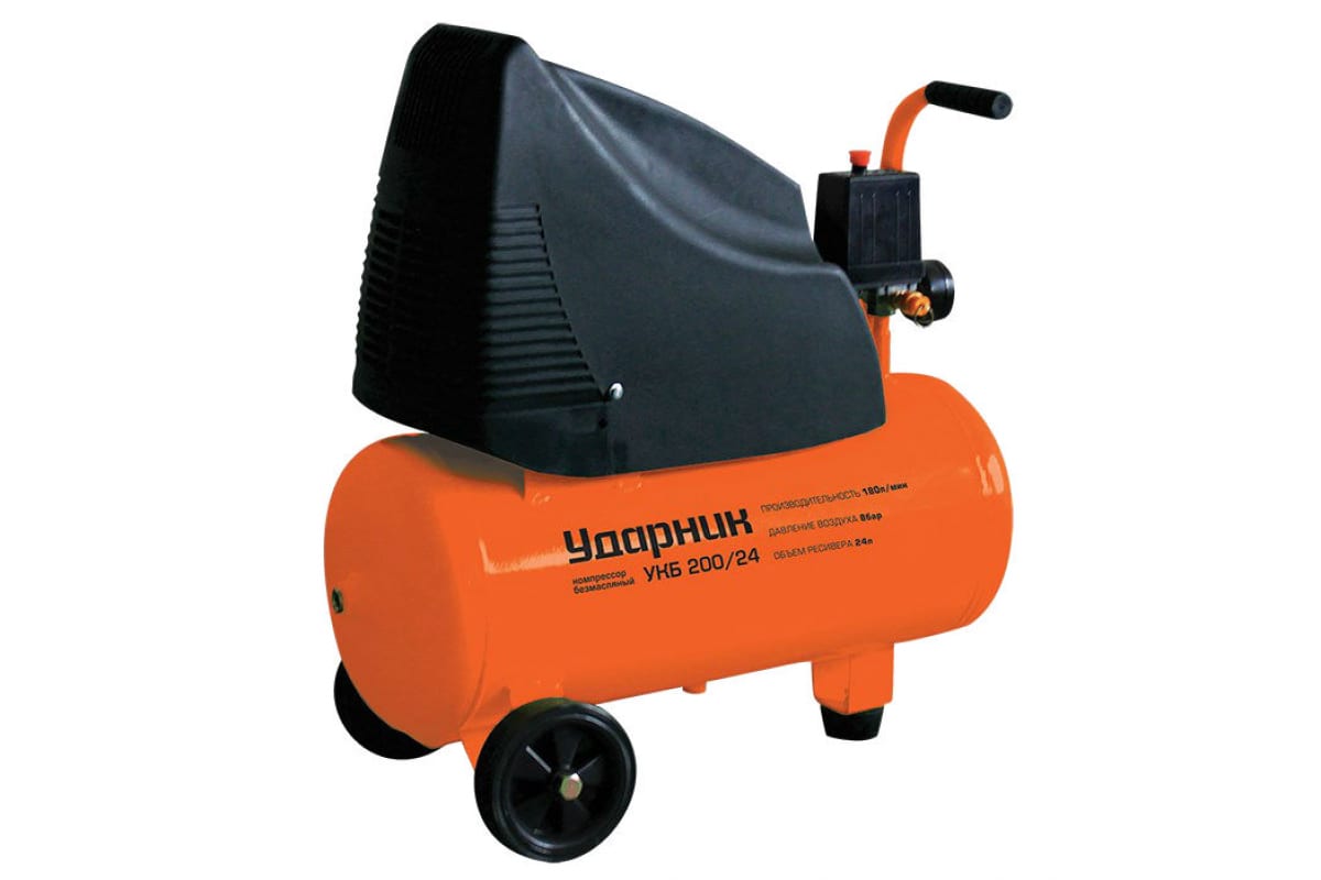 Компрессор УДАРНИК УКБ 200/24 39420 позволяет продувать различные отверстия, обслуживать автомобили, подключать инструмент пневматического принципа действия. Два крупных колеса делают простым и удобным перемещение компрессора по садовой дорожке или гаражу. Низкий уровень шума оборудования гарантирует комфортную работу оператора, а также не вызывает неудобств у людей, которые в процесс эксплуатации оказались рядом. Контроль давления выходного воздуха осуществляется при помощи манометра.
