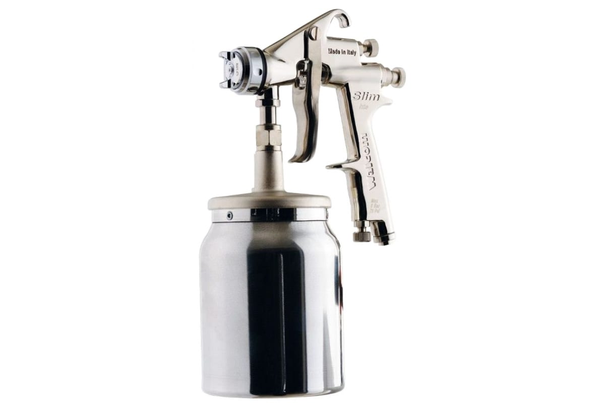 Краскопульт для грунтов и красок WALMEC SLIM I HTE SR 10088.17 имеет литровый бачок, выполненный из прочного и устойчивого к воздействию агрессивных растворителей материала. Работает на сжатом воздухе. Сопло формирует постоянную и равномерную распыленную струю - для качественного нанесения краски на поверхность. Давление в системе показывает манометр (приобретается отдельно).