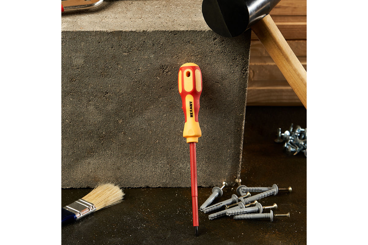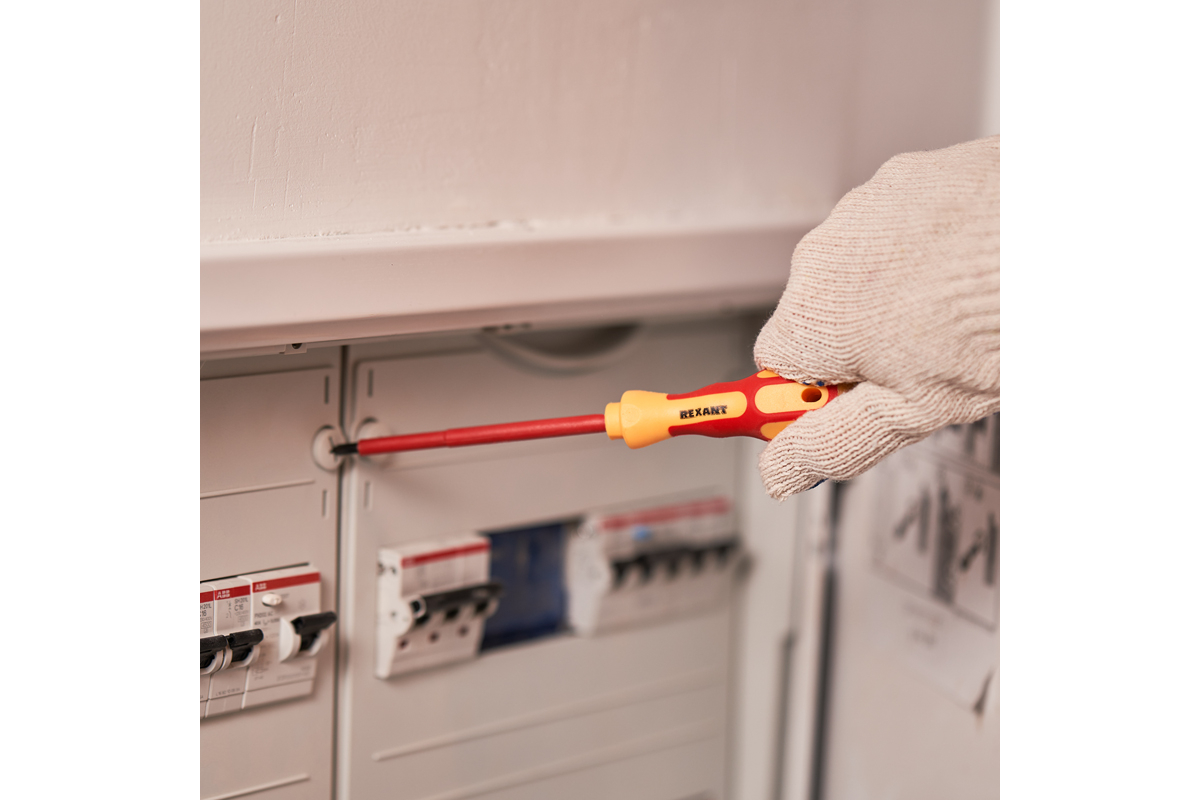 Отвертка арт. 12-4716 REXANT предназначена для электромонтажных работ, монтажа/демонтажа крепежных соединений.