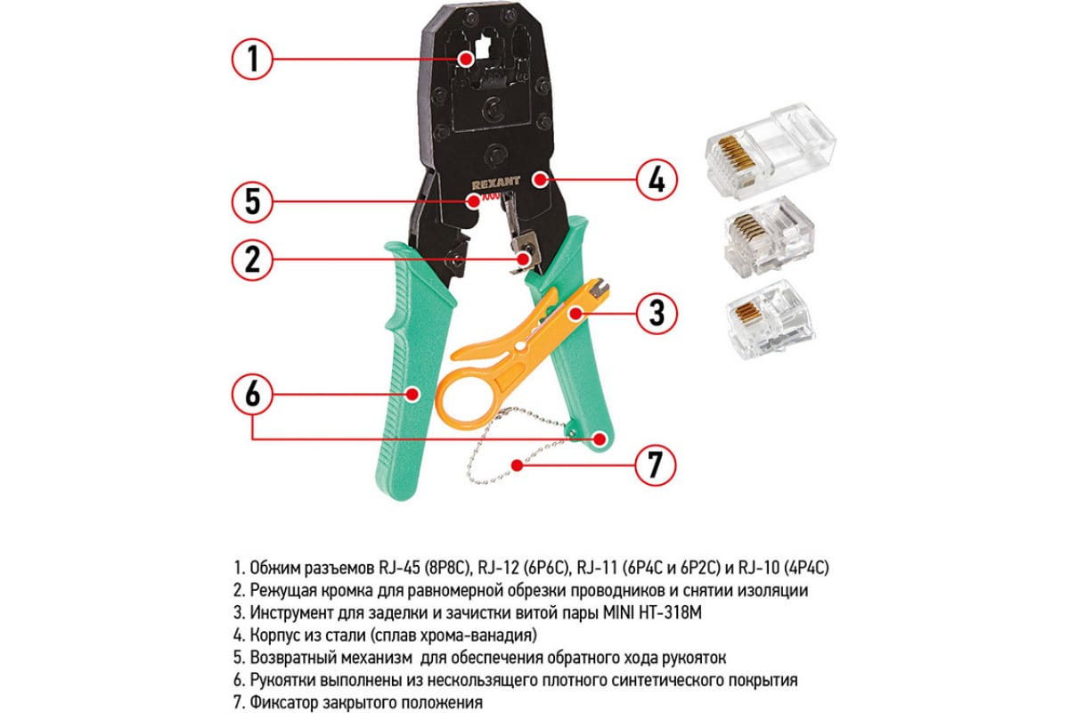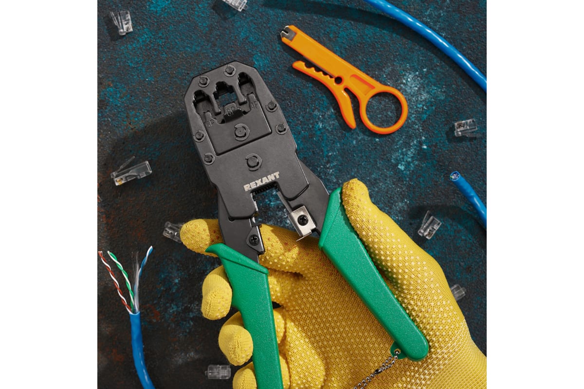Кримпер для обжима 8P8C / 6P6C / 4P4C /ht-200/, заделка витой пары /ht-318М/ REXANT ht-315 12-3441 удобен в использовании. Инструмент представляет собой надежную конструкцию из закаленной инструментальной стали с воронением.