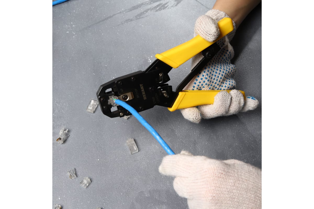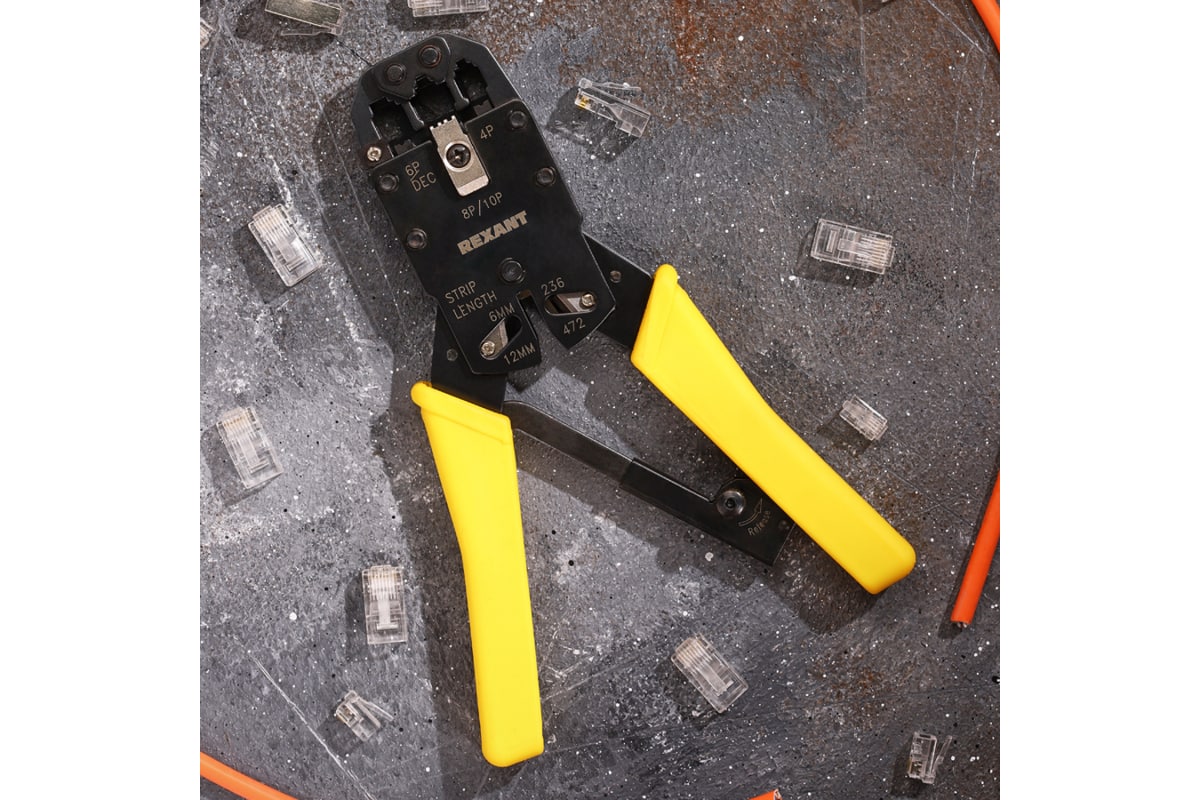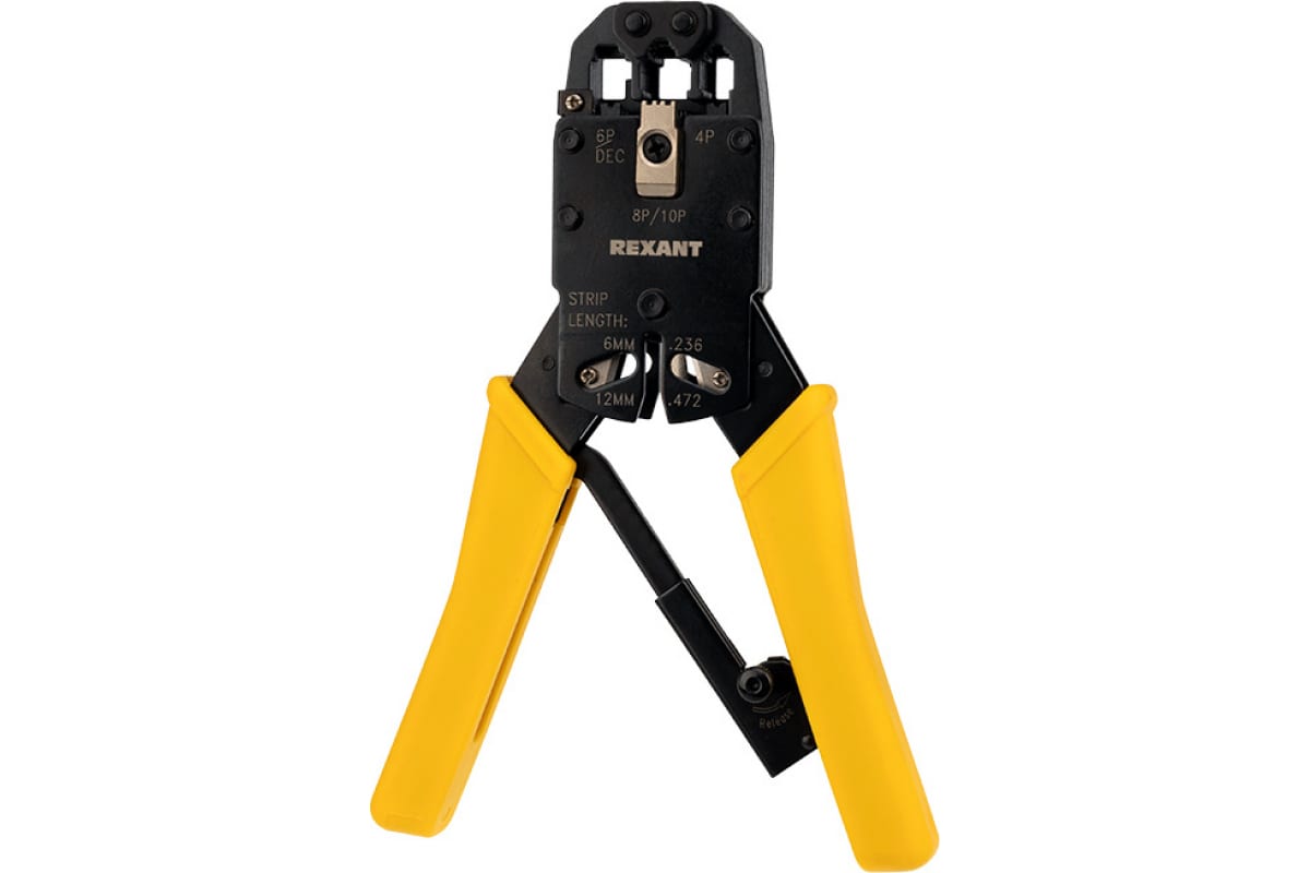 Кримпер REXANT HT-200R — универсальный инструмент для обжима разъемов RJ-45 (8P8C и 10P10C), RJ-12 (6P6C), RJ-11 (6P4C и 6P2C) и RJ-10 (4P4C), а также для снятия изоляции и обрезки проводов.