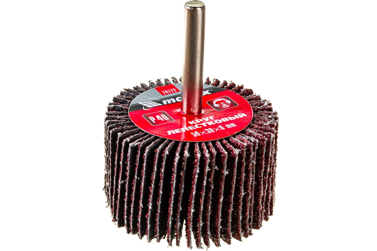 Лепестковый круг для дрели Matrix 74172, 50 х 30 х 6 мм, с зернистостью P 40, является оснасткой для дрелей и прямых шлифовальных машинок с посадочным гнездом 6 мм, рассчитанных на скорость до 9500 об/мин. Круг применяется при грубой обработке древесины, металла и других материалов. Крупнозернистый абразив P 40 эффективно снимает толстые слои краски и ржавчины, зачищает сварные швы, удаляет заусенцы.