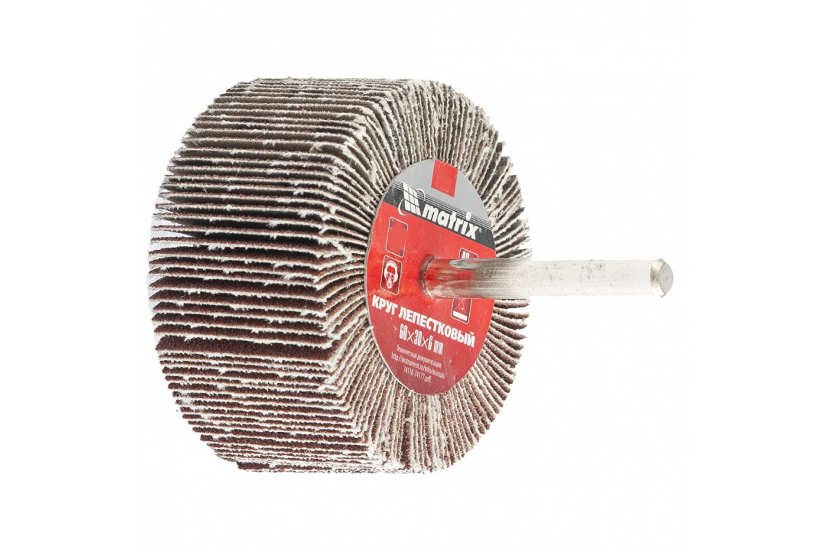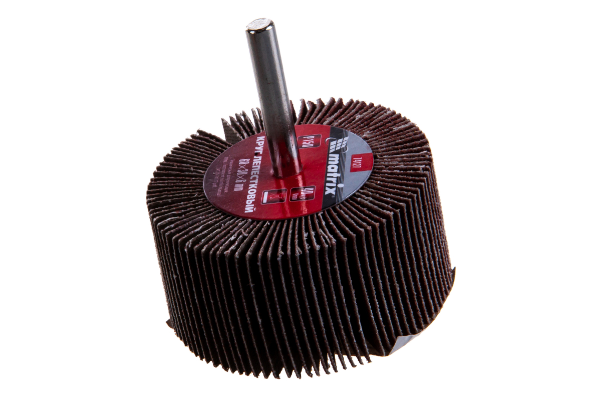Лепестковый круг Matrix 74127, 60 х 30 х 6 мм, с зернистостью P 150, устанавливается на дрели или прямые шлифовальные машины с патроном соответствующего размера и максимальной скоростью вращения 8000 об/мин. Используется для финишной обработки деревянных и металлических поверхностей. Среднезернистый абразив P 150 равномерно снимает тонкий слой материала, краски или лака, позволяя получить гладкую поверхность.