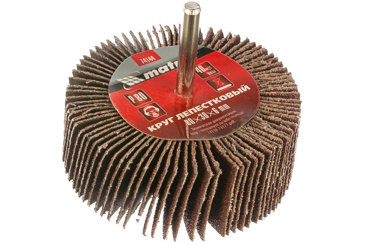 Лепестковый круг для дрели Matrix 74144, 80 х 30 х 6 мм, с зернистостью P 80, используется совместно с дрелями и прямыми шлифовальными машинами с посадочным диаметром 6 мм и максимальной скоростью вращения 6000 об/мин. Оснастка предназначена для радиального шлифования внутренних и наружных поверхностей. Абразив P 80 позволяет проводить промежуточную обработку древесины и металла - удалять заусенцы, слои лака, ржавчины или краски, зачищать сварные швы, готовить поверхности к чистовому шлифованию.