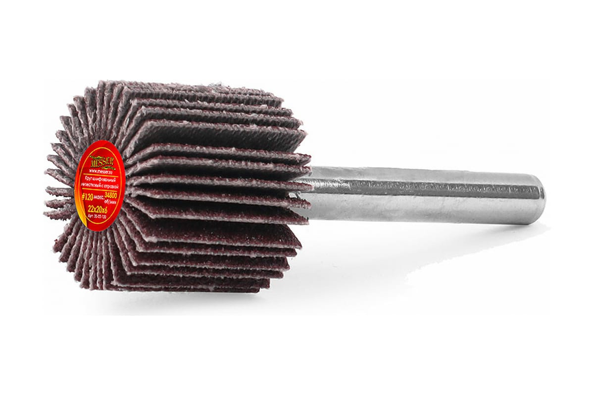 Круг лепестковый на шпильке 22x20x6 мм №120 MESSER 20-22-120 используется на прямых шлифовальных машинках с цангой 6мм.