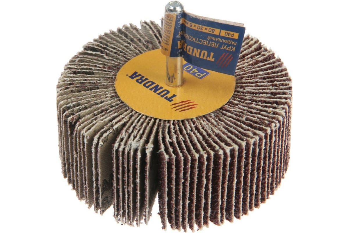Круг лепестковый радиальный (80х30х6 мм; Р40) ТУНДРА 1875468 используется для шлифования дерева, металла, пластика и других материалов. Благодаря веерному расположению лепестков повышается скорость и качество работы. Такое приспособление вы сможете применять для труднодоступных поверхностей.