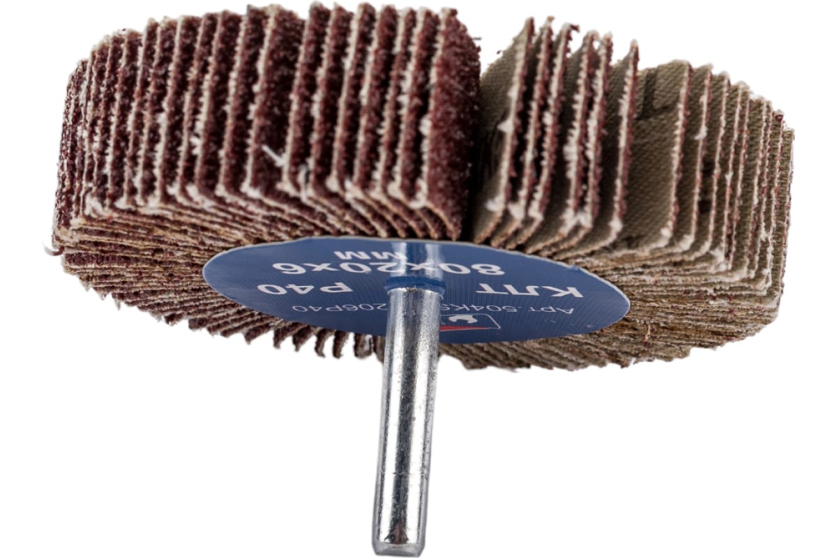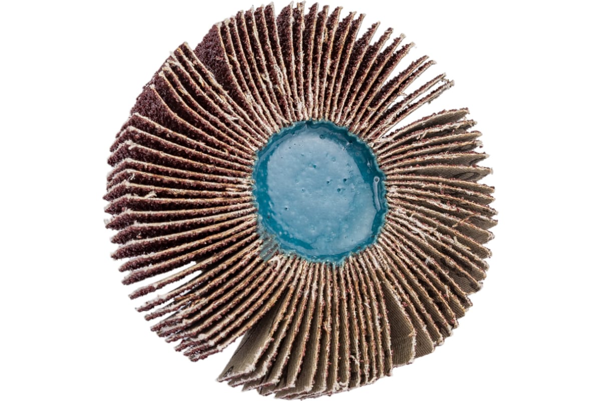 Состоит из лепестков тканевой шлифовальной шкурки (оксид алюминия), которые расположены в виде веера вокруг металлического штыря.