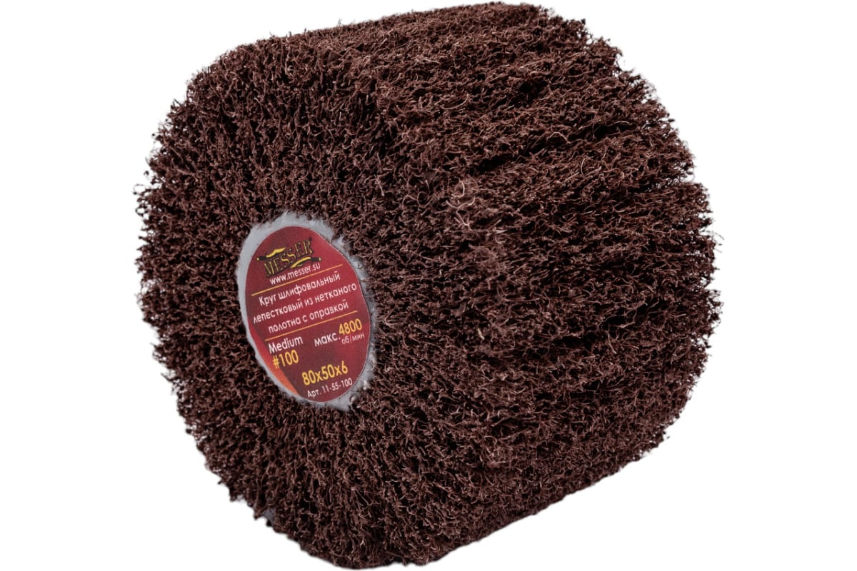 Круг шлифовальный лепестковый из нетканого полотна с оправкой на шпильке (80x50x6 мм; Мedium 100) MESSER 11-55-100 используется на прямых шлифовальных машинках с цангой 6мм.