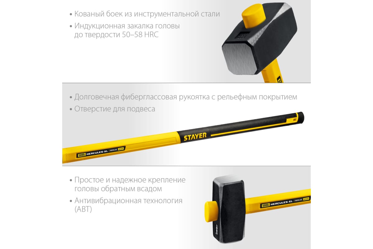 Кувалда с удлинённой рукояткой Stayer Hercules 5 кг 20110-5_z03 представляет собой профессиональную модель.